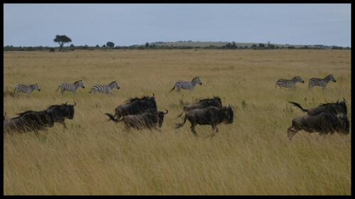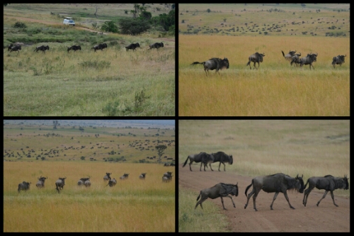 The most common animals – there were thousands – were the wildebeest and zebra. They seemed pretty content to hang out together but exhibited quite different characteristics. The wildebeest were incredibly skittish and, even if you were nowhere near, would dash theatrically in some direction or other, legs and mane flailing everywhere, then would stop at a safe distance and glare at you.