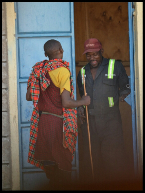 Continuing our journey, we entered Maasai land. We could have been in a different country altogether. The red soil gave way to dry, dusty yellow-brown earth and the tall trees were replaced by small shrubs, cacti and thorny acacias.The temperature increased noticeably too. The walking continued though: we were continually surprised to see people improbably far from the closest village or even building!