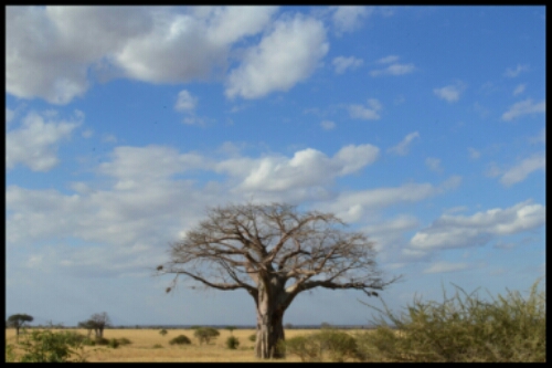 One of the most interesting things we saw on the way to Tarangire were the groups of teenage boys hanging around the roadsides, dressed in black with white paint on their faces and charcoal on their bodies. I intend to read around the subject a bit more because it sounds interesting but basically I think they’re an ‘age-set’ of 14-18 year olds who have been recently circumcised (during which they must not flinch or cry). They spend many months wandering their land until they heal, shooting birds, capturing cattle and generally learning how to be a man and warrior (moran). This is a relatively short phase in a long process full of ritual and tradition, culminating in them becoming elders.