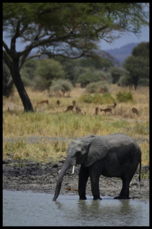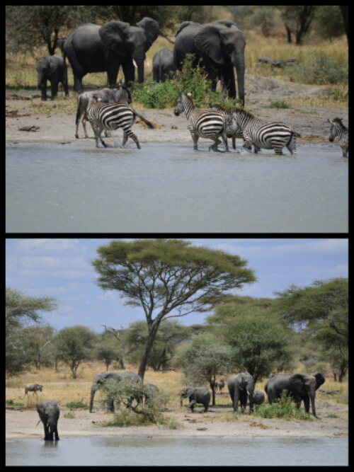 A highlight, early on in the day, was a visit to a watering hole where we spent ages watching a group of elephants splashing about, having fun, whilst zebras and wildebeest sipped more reservedly at the edges!