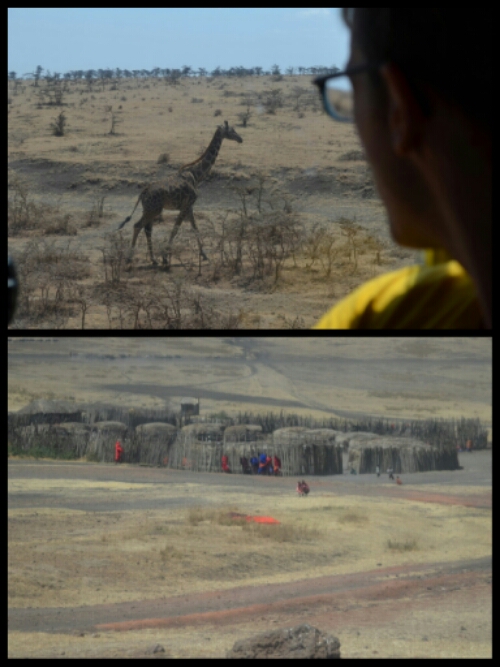 As we ascended through the Ngorongoro Conservation Area, the landscape altered, becoming lush and green and hilly. Terracotta dust covered the bottom metre or so of vegetation along the roadsides. Sprinklings of pink, yellow and white flowers emerged here and there. An unexpected giraffe appeared now and again or a Masaai village.