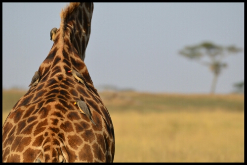 Giraffes being cleaned of tics by red-billed ox pickers.