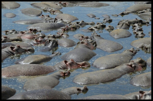 At lunch time we pulled into a picnic area. There was quite the aroma about the place which, we discovered, was down to an enormous group of hippos (about 250 we estimated). The revolting beasts just lie there in the shallow muddy water all day every day in their own excrement, breaking wind and splashing water over their backs with their tails! Gross!