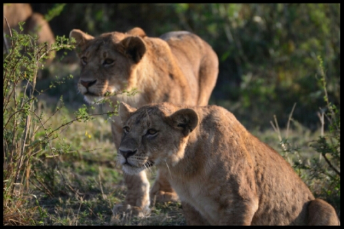 Due to the coldness of the morning, we were reluctant to stand up in the car but, to my surprise, I still spotted my first lion!