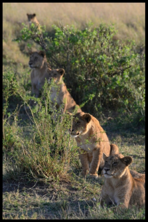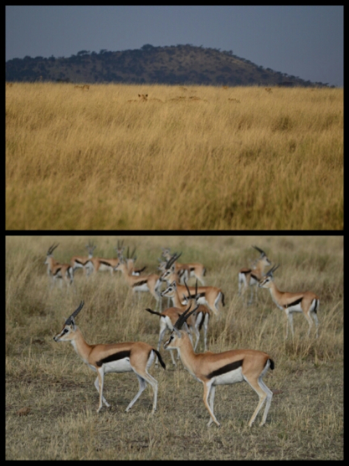That evening, in the setting sun, we spotted our first hyenas and lots of Thompson’s gazelles, yellow-throated sand grouse, a pair of silver-backed jackals and some more lions.