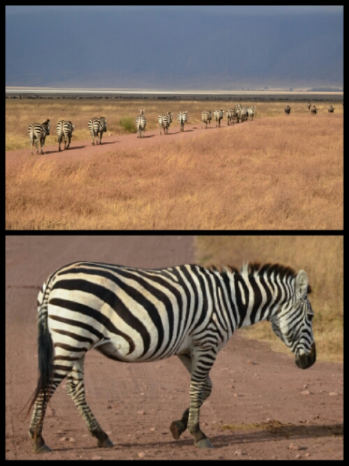 That night we camped at our next destination, Simba campsite near the Ngorongoro crater. As we were trying to get to sleep, we became aware of the tearing sounds of grass being uprooted intermingled with a clear chomping noise and the sound of tails swishing into the walls of the tent! Zebras! We were quite happy to coexist with these visitors for the half an hour or so until they were all scared off at high speed by something. I didn’t like to think that it was the animals of the campsite’s namesake!