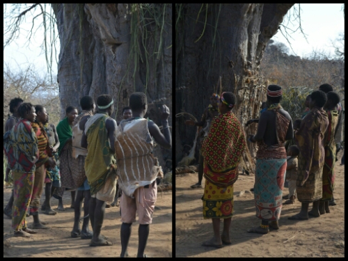 Our morning was to be spent with the Hadzabe (or Hadza) tribe, also referred to as the Bushmen. I’d anticipated being able to choose fruit picking with the women rather than hunting with the men but it turned out that was not an option! First we passed a tree on which hung a range of arrows and some small antelope skulls of some kind. We also saw the root used for making poison. More on that later.