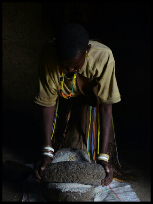 In the main room, they demonstrated how to grind maize into flour before encouraging me to have a go. Much to their amusement, Dean then tried his hand at it. We discovered afterwards that it’s unheard of for a Datoga man to participate in such women’s work!