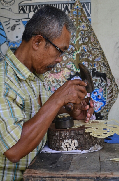 For the benefit of tourists, outside was a woman doing batik and a man creating a shadow puppet from buffalo skin.