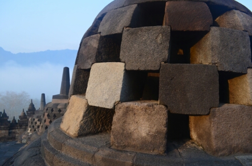 By any measure, Borobudur is impressive. It is one enormous pyramid-like temple, on a hill, topped by a huge stupa and, some say, it may once have been in the centre of a lake. With that theory in mind, it’s said that the view from above could represent a huge lotus flower. A nice idea if it’s true.