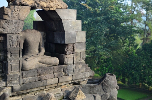 An earthquake in 16th century and another in 2006 destroyed much of Prambanan whilst Borobudur was swallowed by jungle and volcanic dust. Once rediscovered, both were subjected to treasure hunters, souvenir collectors and locals in search of building materials. Both are now protected by UNESCO and have been substantially restored.