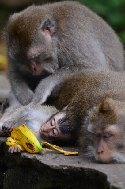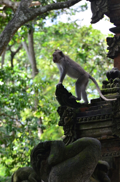 The other main thing we did in Ubud was a visit to the monkey forest. There are 6 troops who live in and around a series of temples and bathing pools. It’s one of those situations where the macaques are very brave because they’re fed bananas continuously by tourists and invited onto heads and shoulders. I wasn’t too delighted when one jumped onto my bag as soon as we arrived! After that I was more alert and avoided further contact!