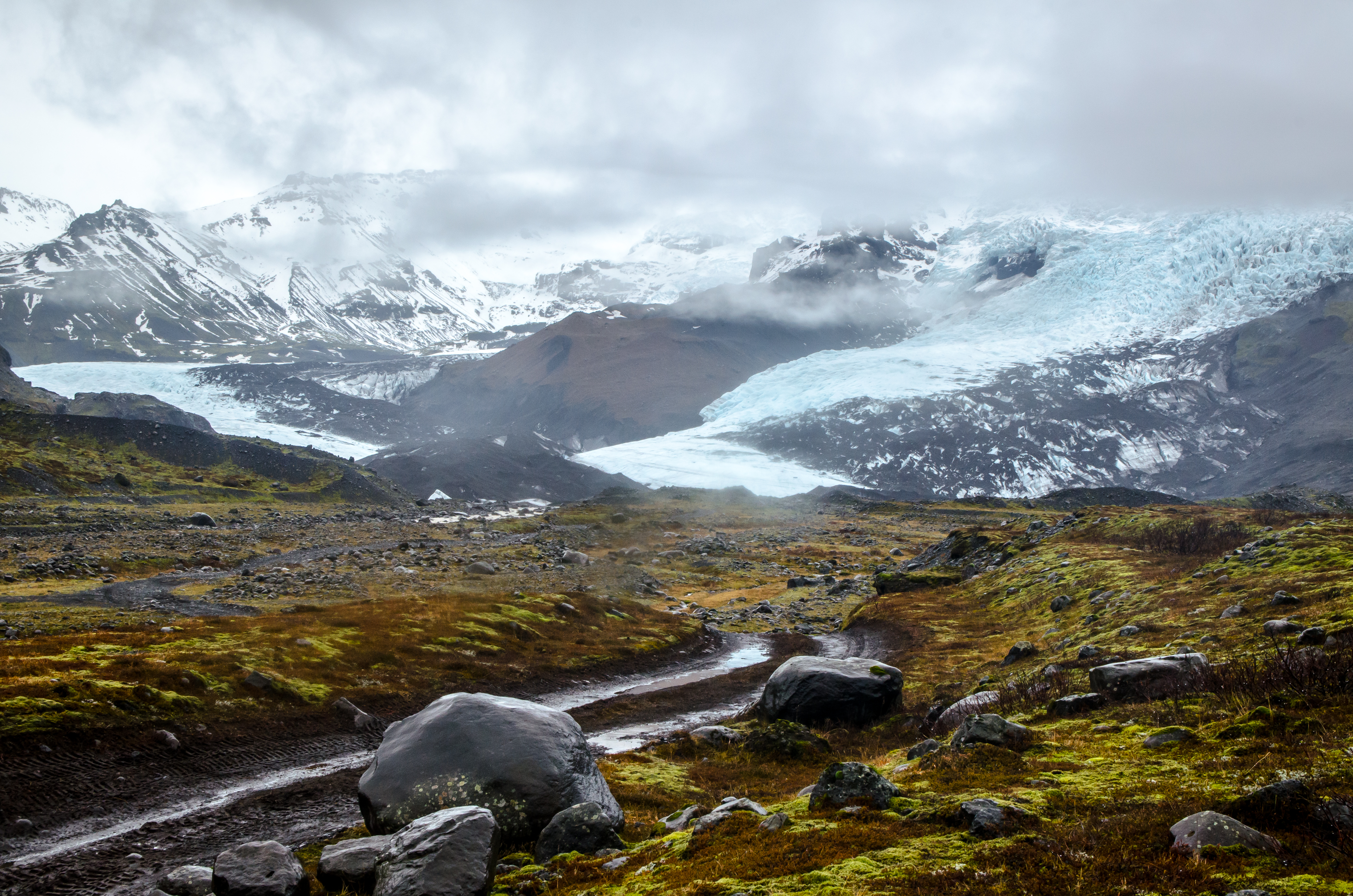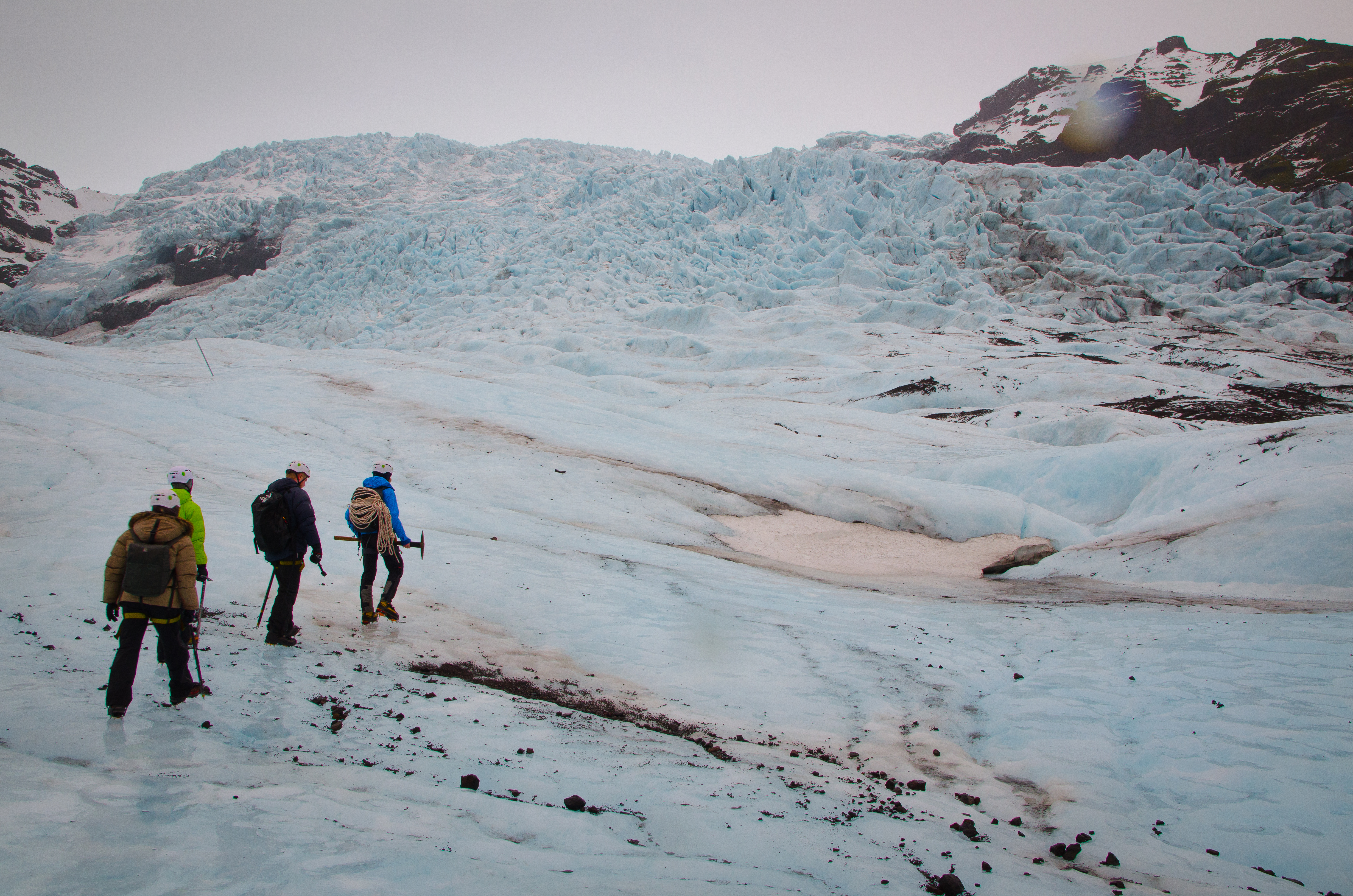 Iceland is home to several ice caps (11% of its area) – ancient snowy regions which have compressed into ice, crushing the ground below, sending glacial fingers creeping stealthily, determinedly through any available spaces between mountains. Vatnajökull is Europe’s largest ice cap by volume and we joined a five-hour Glacier Guides trek on one of its 30-ish outlet glaciers, Falljökull.