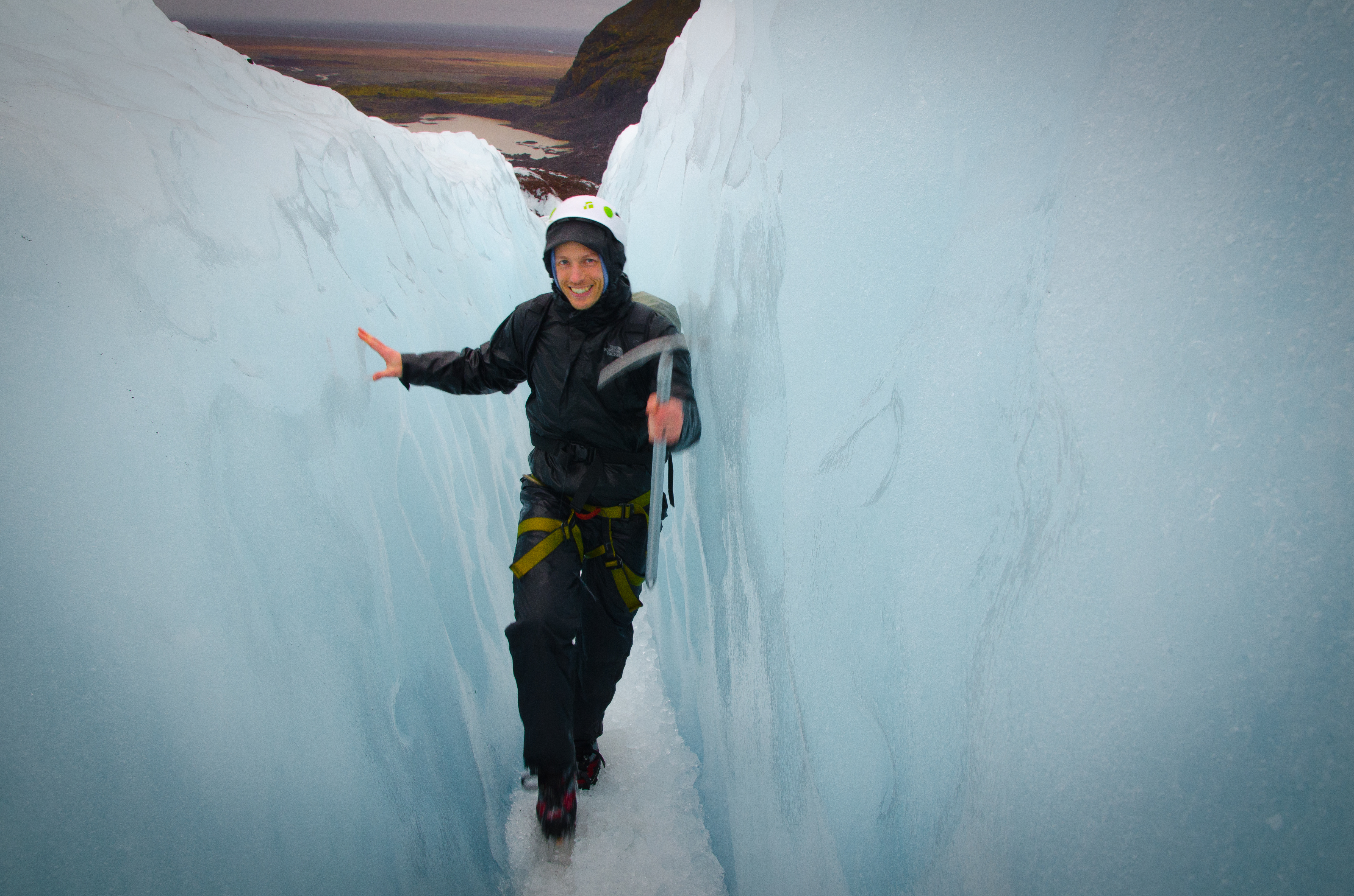 One highlight was walking through a crevice. These are created when the ice – like flowing water – splits to fill the available space. A fall into one would be very dangerous if you weren’t expecting it which is why guides are compulsory.