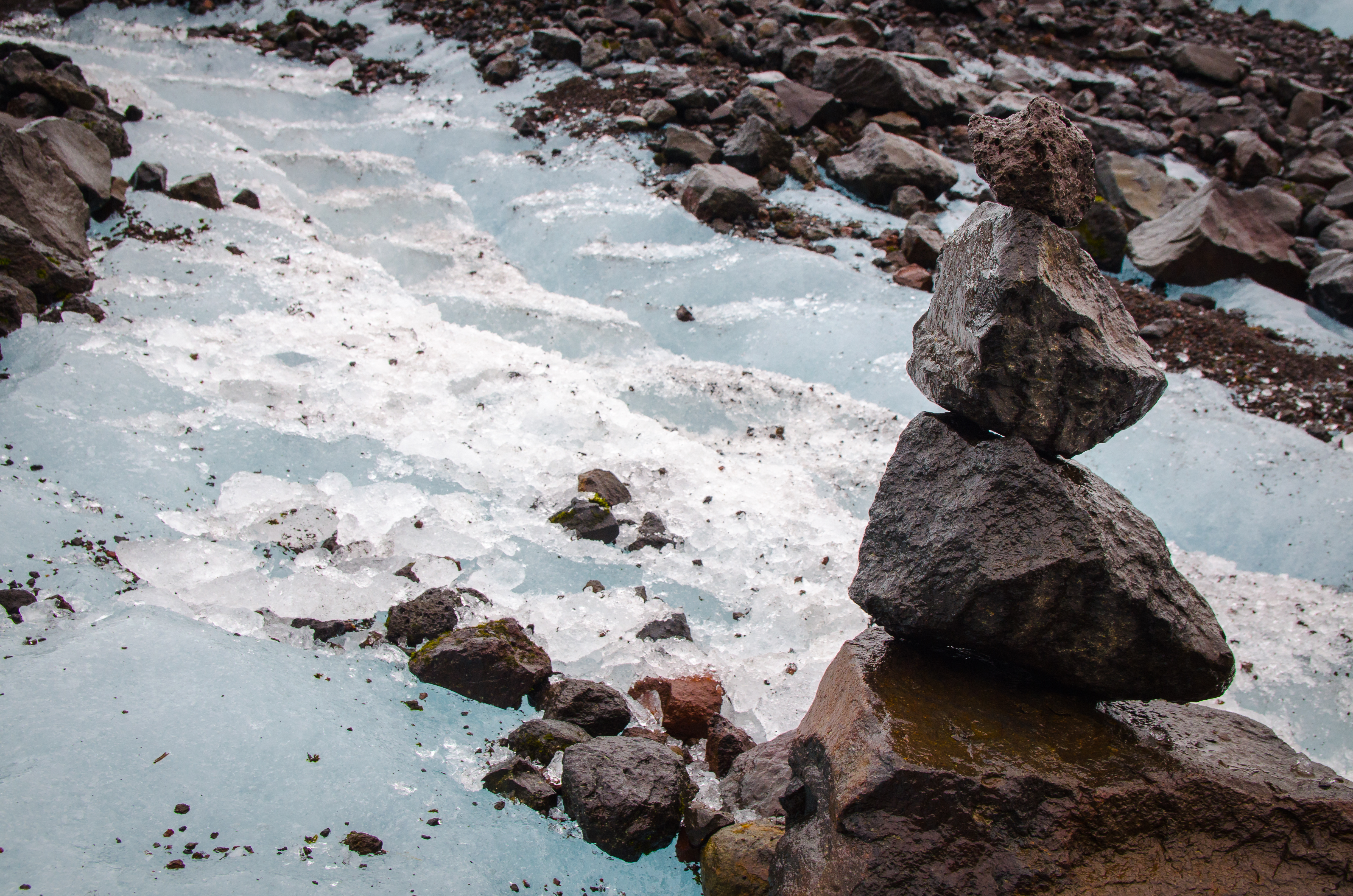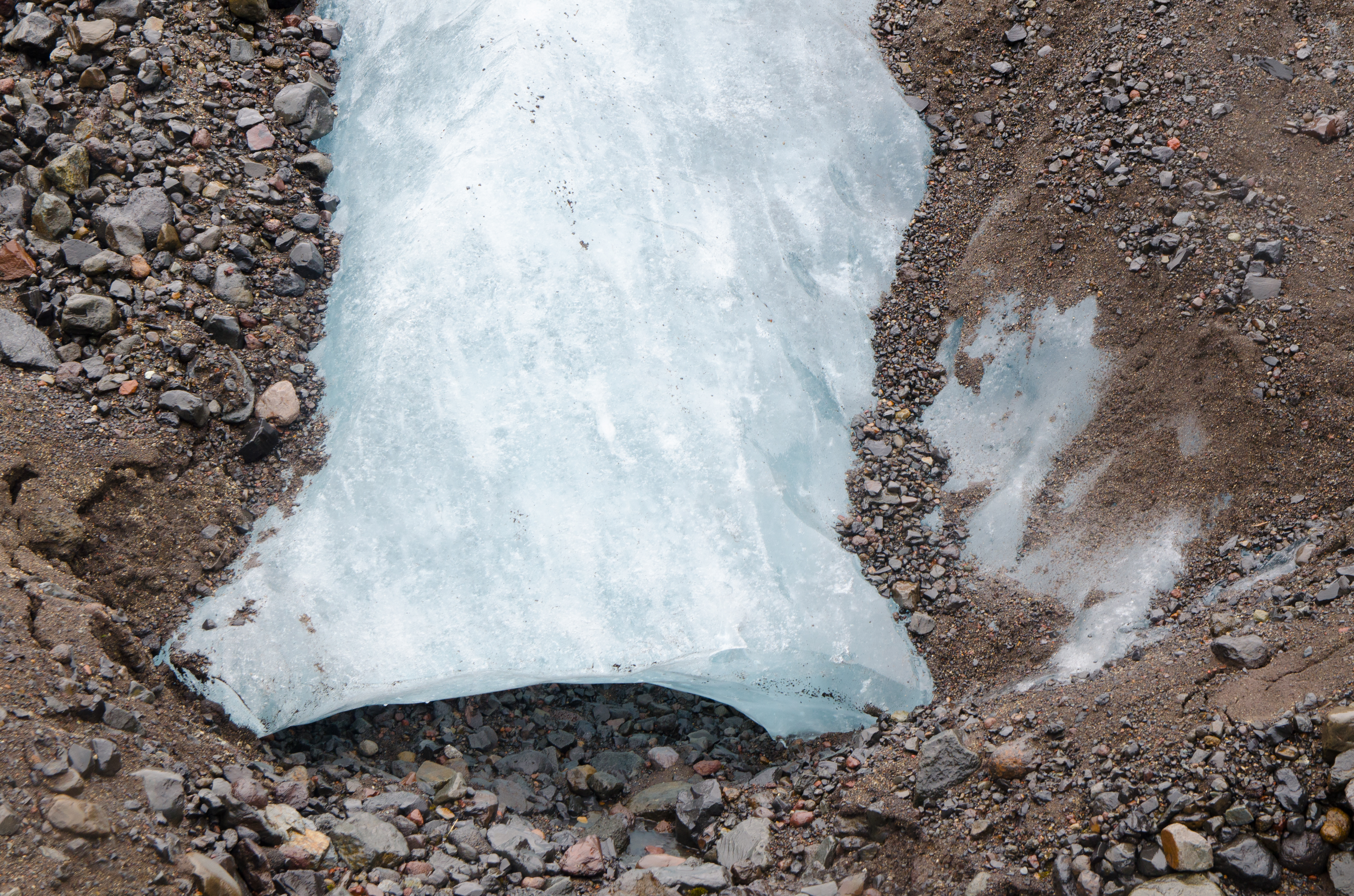 We were surprised to learn that only a thin layer of mountain rock debris covered the ice, even from quite far away from the perceived beginning of the glacier.