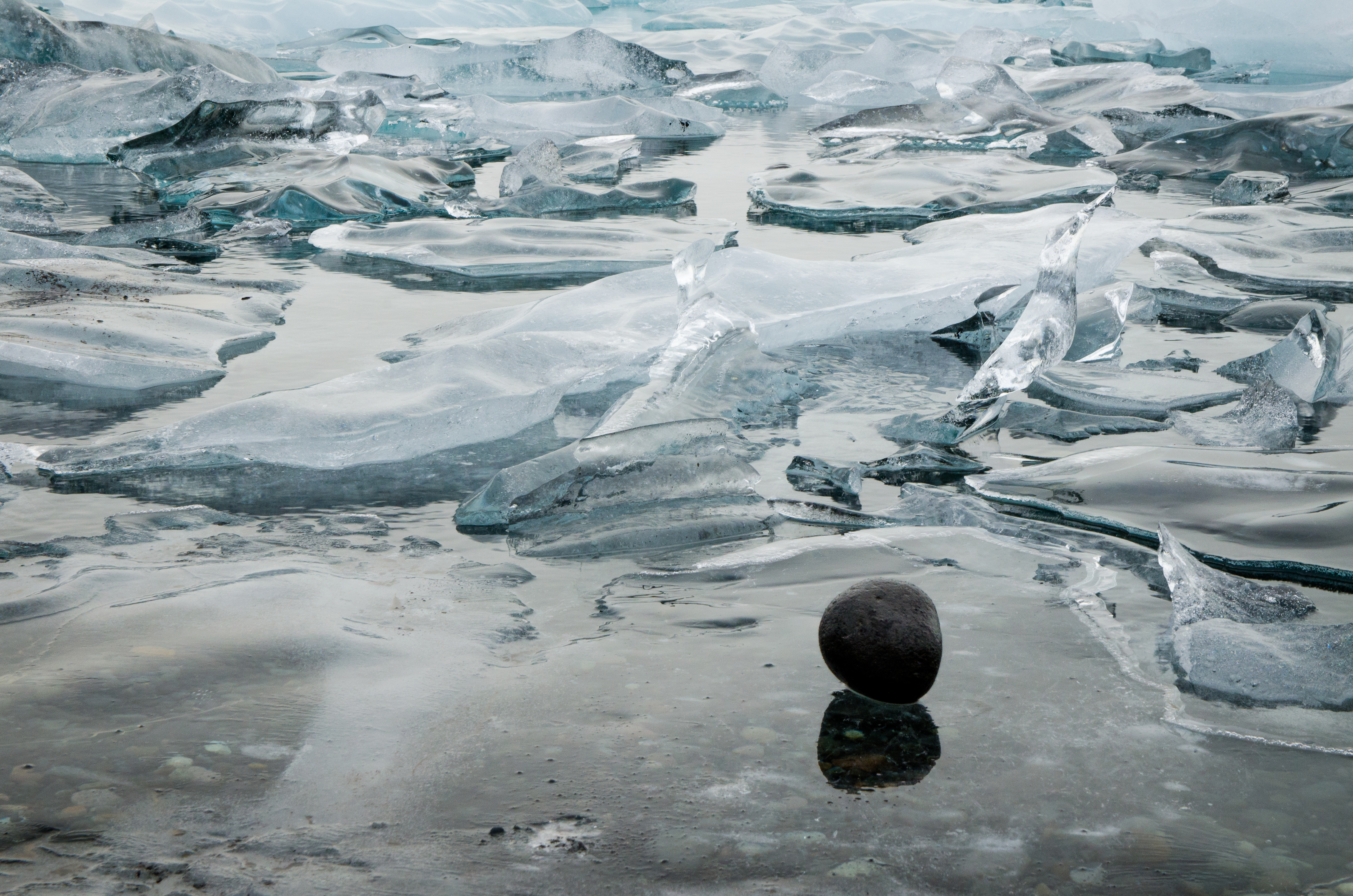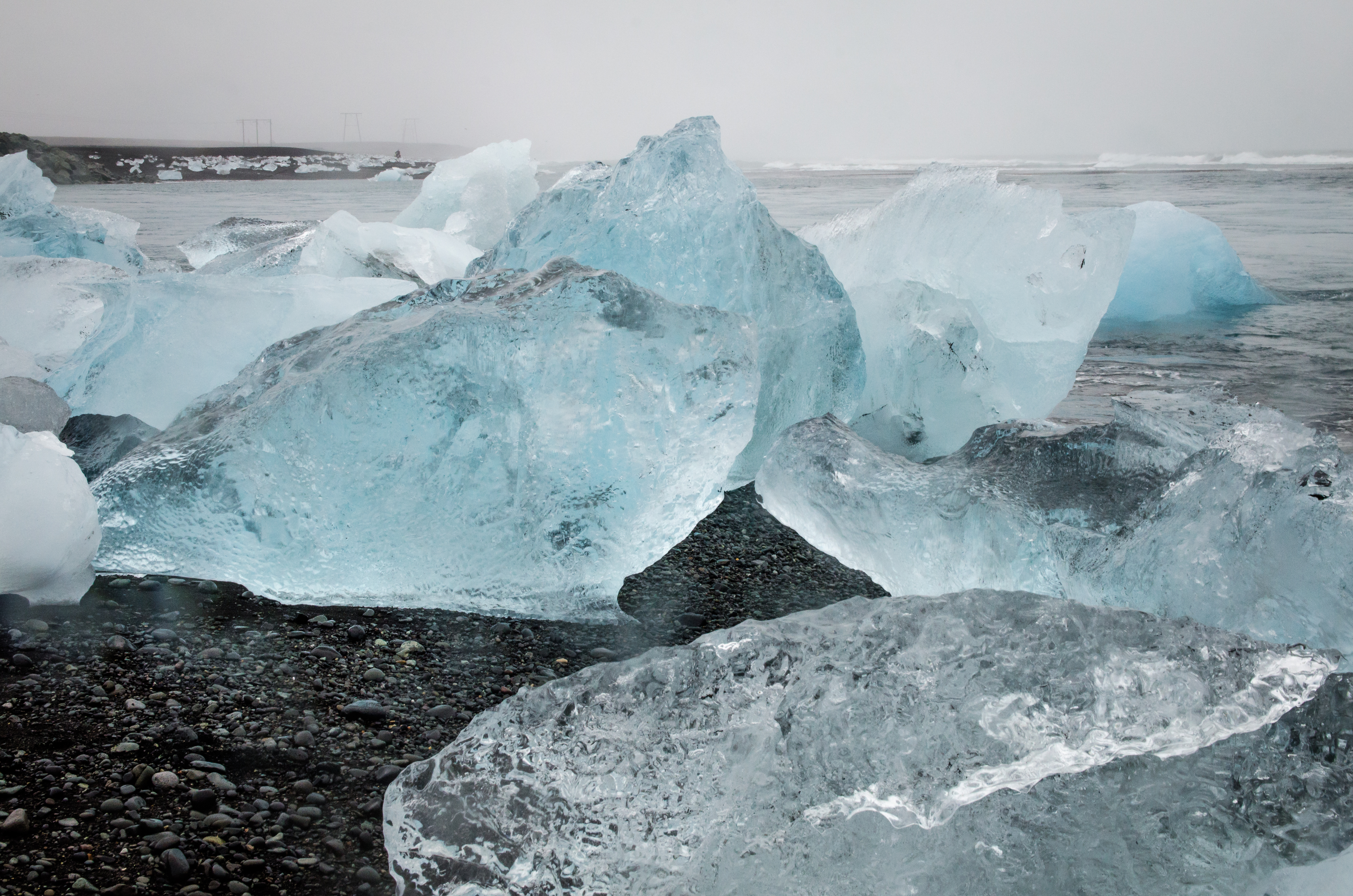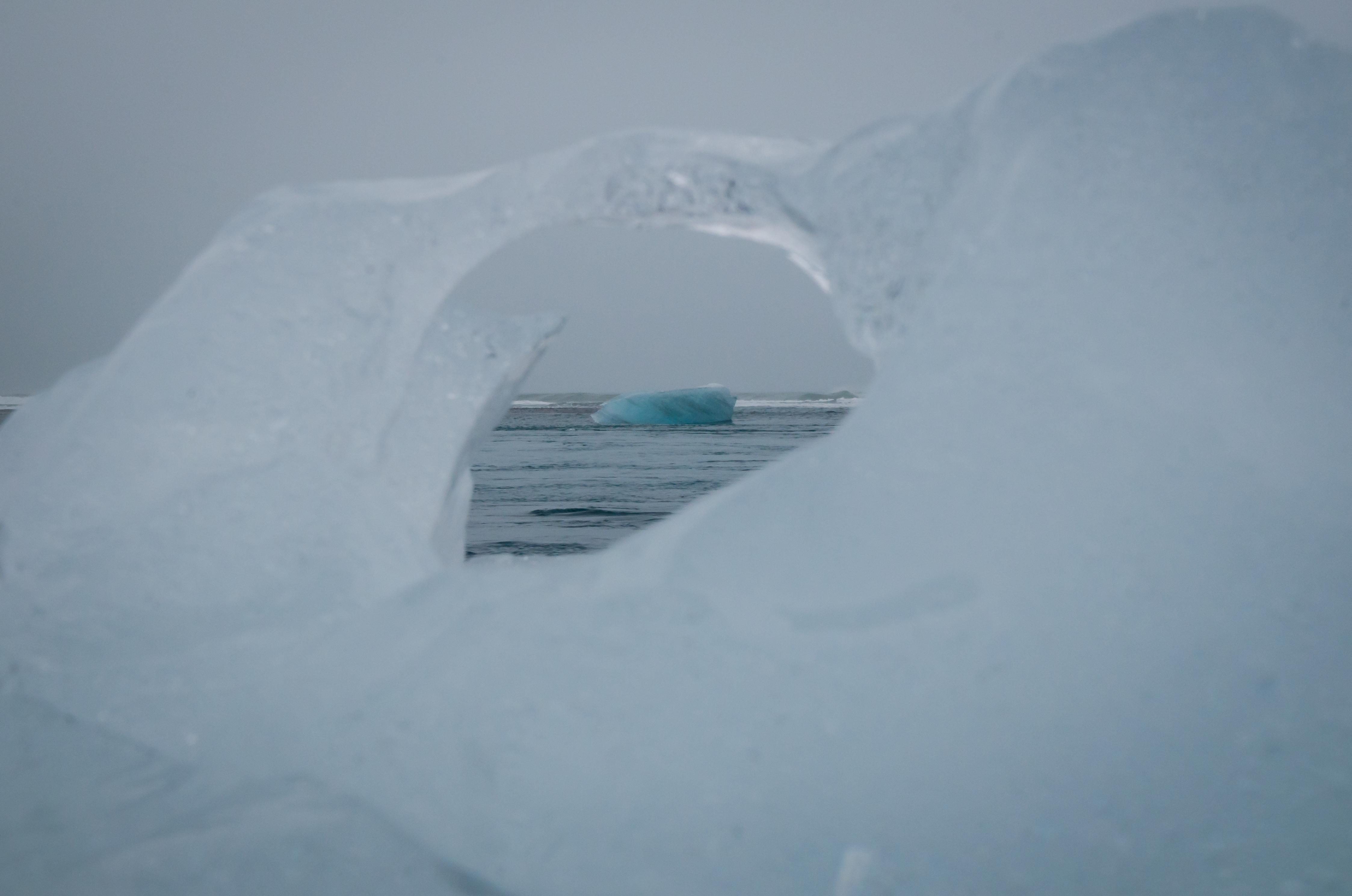 Many of these icy boulders wash up on the beach where they eventually melt or get swept back into the sea.