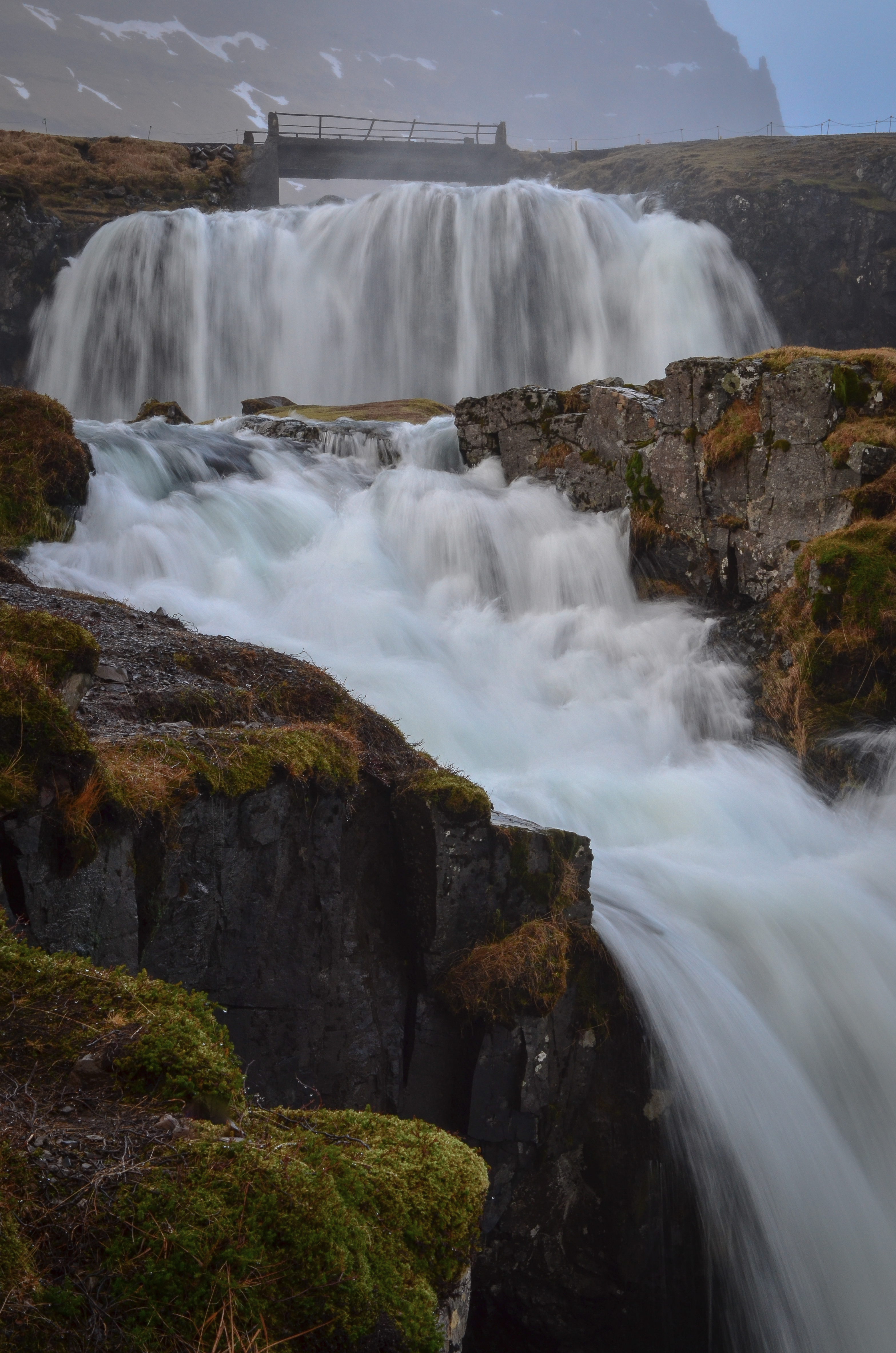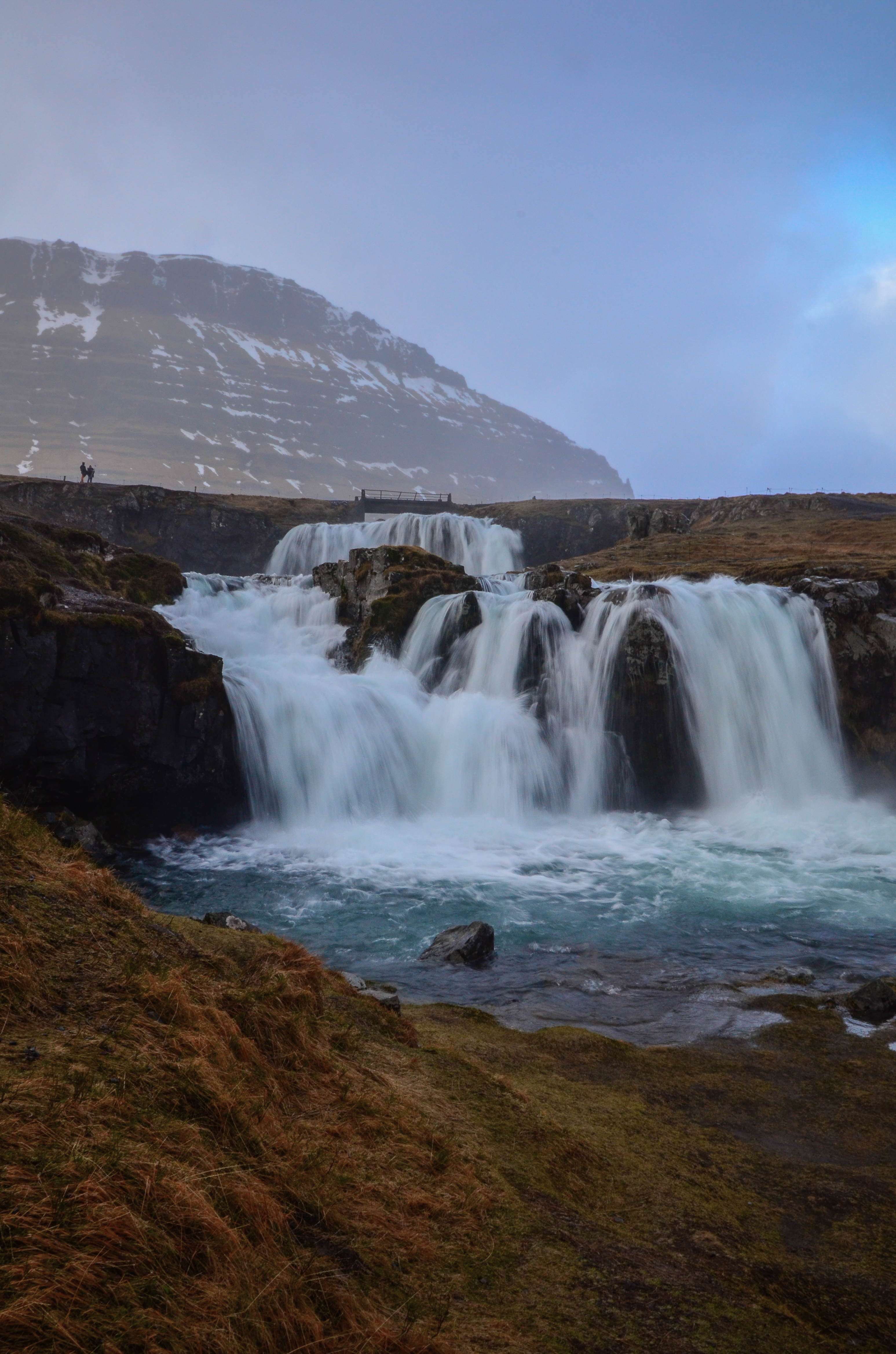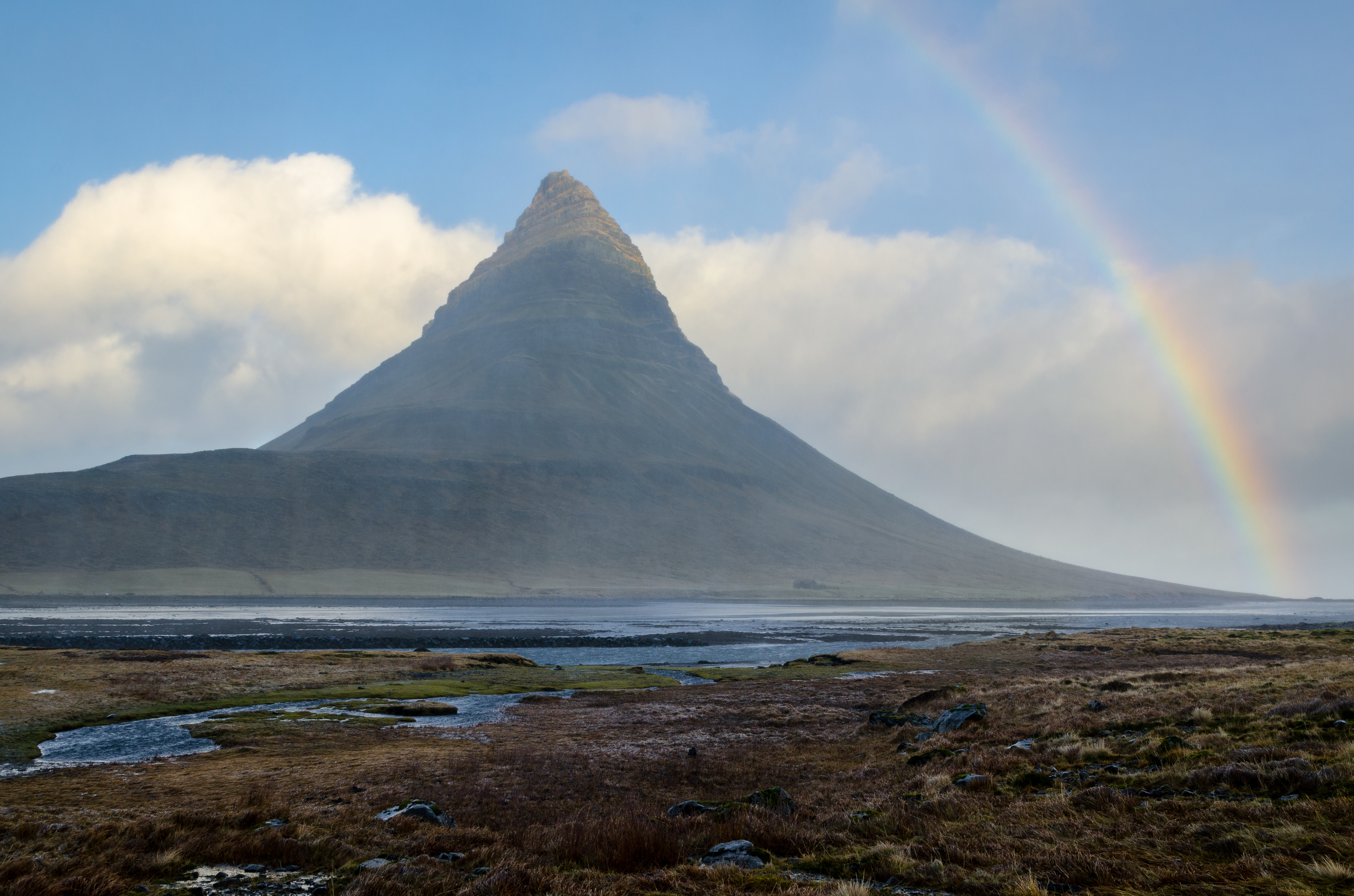 Out in the countryside, every couple of hundred metres it seems there’s fresh mountain water tumbling down a hillside. You can be sure there’ll be a little unsealed road leading to a parking area for even the smallest of these. The energy is often harnessed to provide power. On the Snæfellsnes Peninsula, this one – Kirkjufellsfoss – was near the base of Kirkjufell mountain: