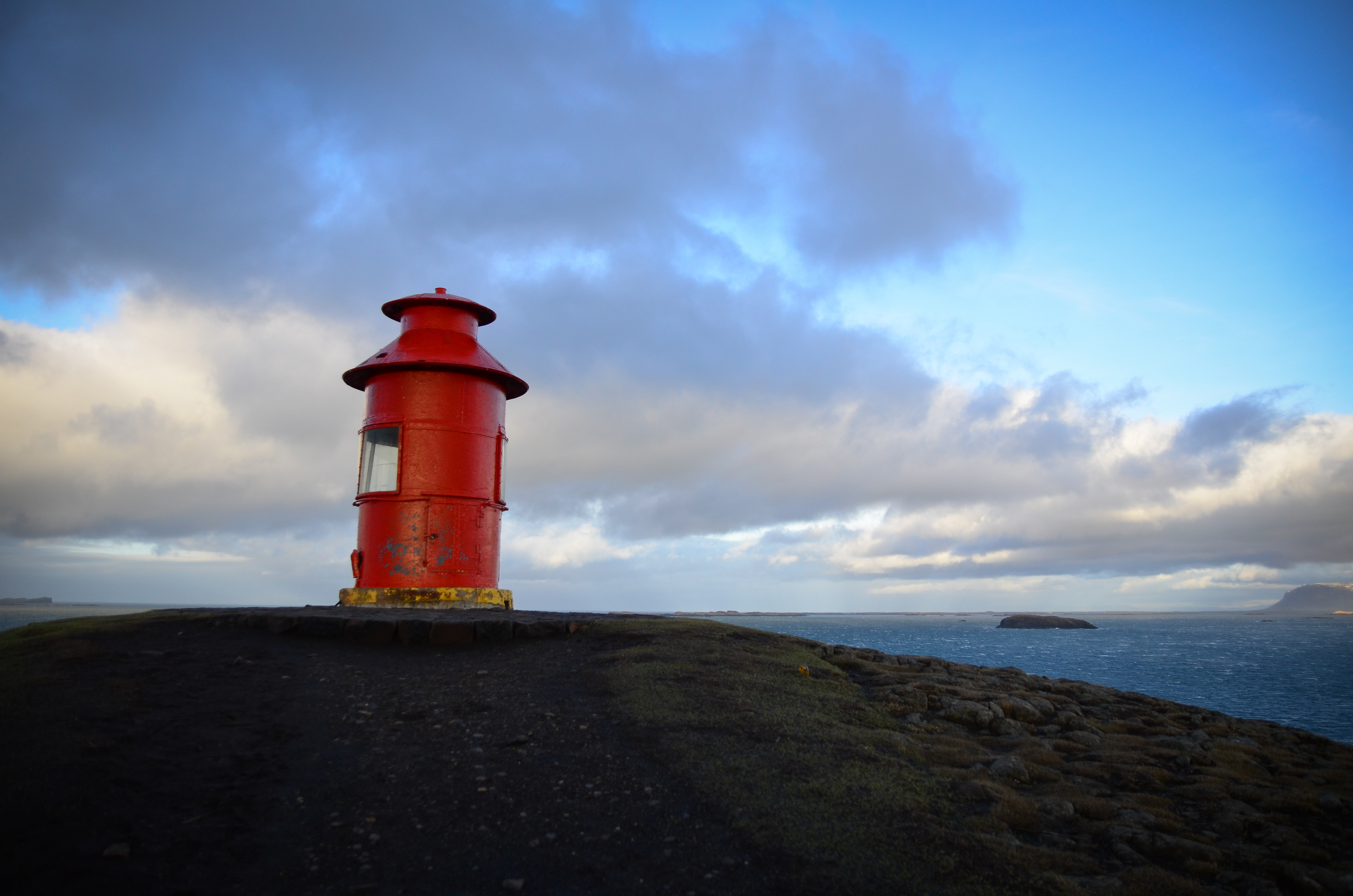 To photograph the harbour at Stykkisholmur, we risked life and limb on a terrifyingly windy ascent to the lighthouse!