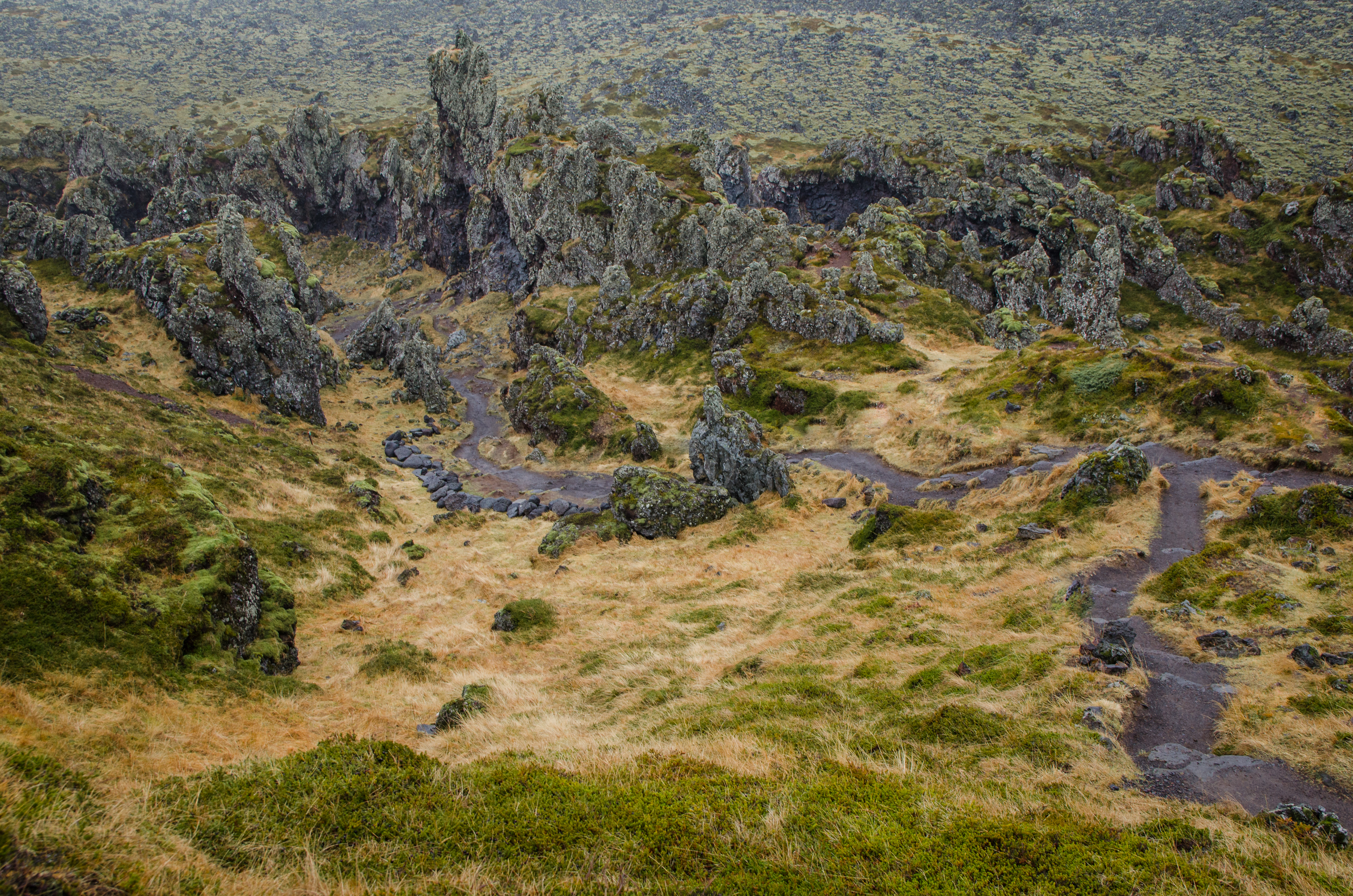 One of the Icelandic sagas (Eyrbyggja) describes a farmer who was sick of circumnavigating the lava field every time he wanted to visit his brother. He had hired two insanely violent Norwegian men (called berserkers) to work for him but one of them fell for the farmer’s daughter. As you might imagine, the farmer wasn’t too happy about that! Seeking advice from the local chieftain, the farmer discovered that this man was also interested in his daughter. They hatched a plan to set the berserker the impossible challenge of clearing a path through the lavafield in order to win his daughter’s hand. Unexpectedly, the berserkers succeeded. But, rather than keeping his word, the farmer trapped and murdered them, allowing the chieftain to may his daughter. A path through the Berserkjahraun lava field can be seen today and the grave of two large men was also discovered!