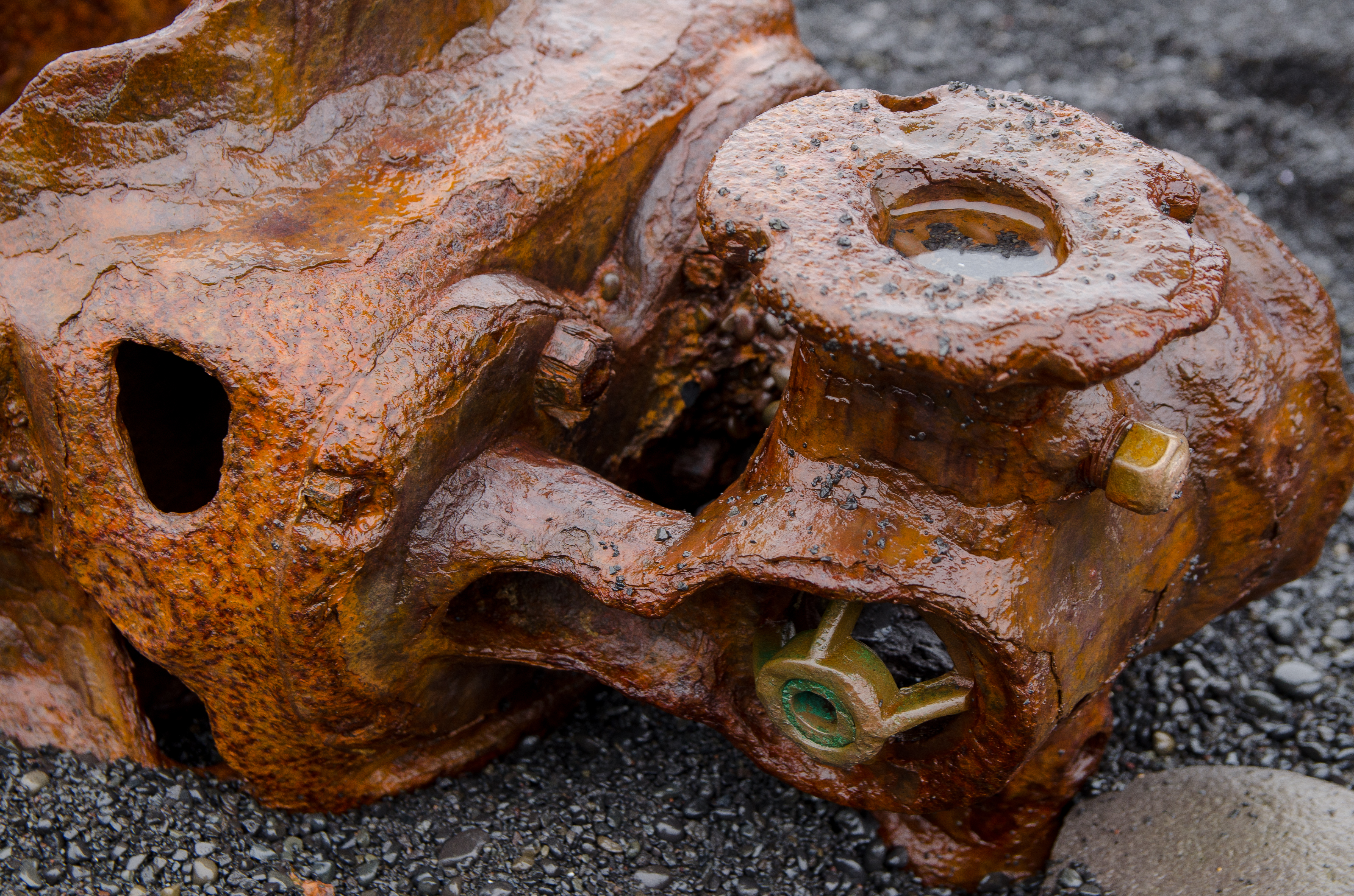 The beach is strewn with the remnants of a 1948 English trawler shipwreck from Grimsby, left there to commemorate the dead.