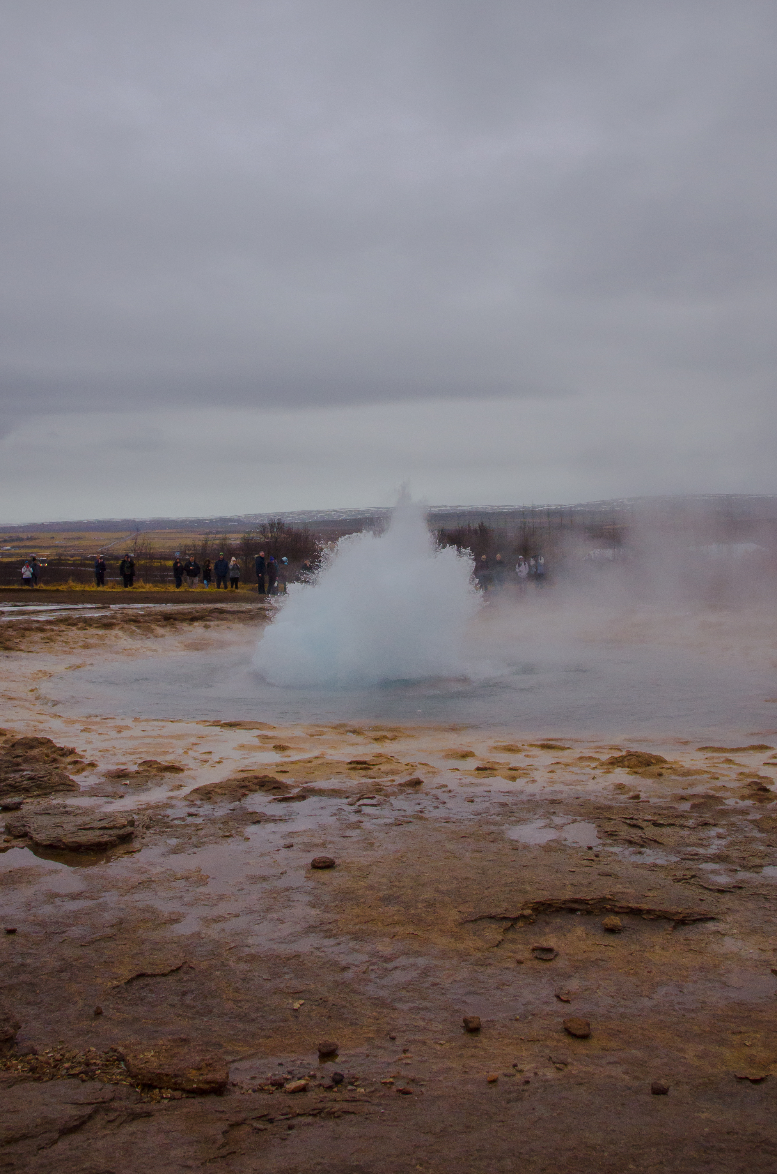 However it’s currently dormant so doesn’t draw anything like as much attention as adjacent Strokkur. This one bubbles away then roughly every five minutes shoots up a huge jet of water before gurgling a little and settling back to a gentle simmer.