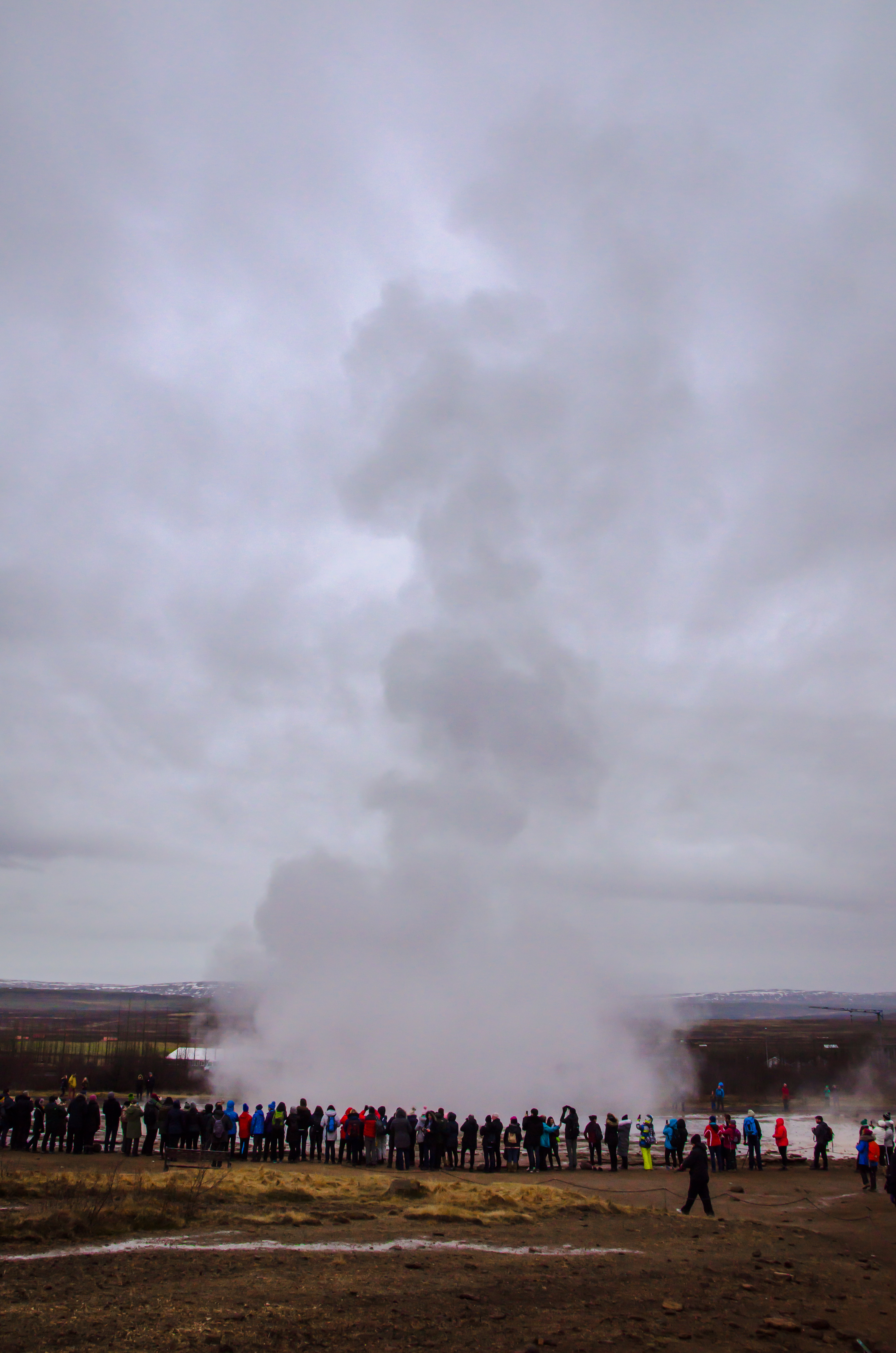 The first sign that you are nearing another of the busy Golden Circle sights is the plumes of steam rising from fumaroles into the sky.