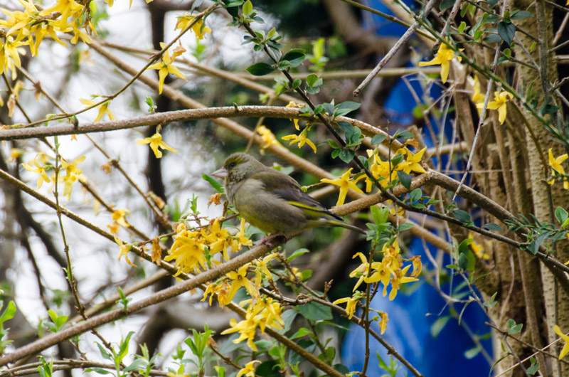 Now the finches. We have three species. The greenfinches are least common although I do have one photo.