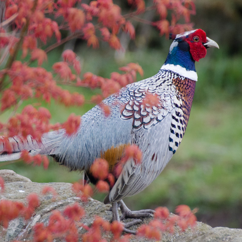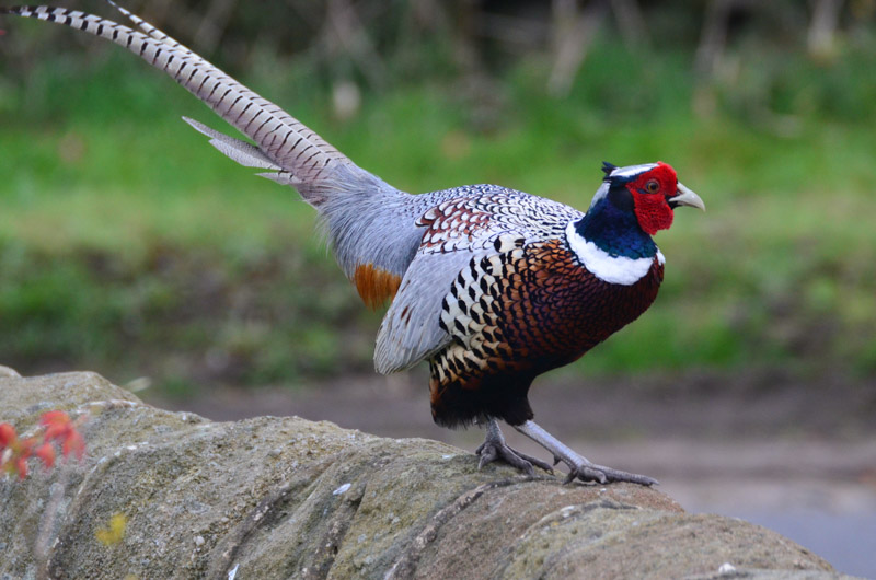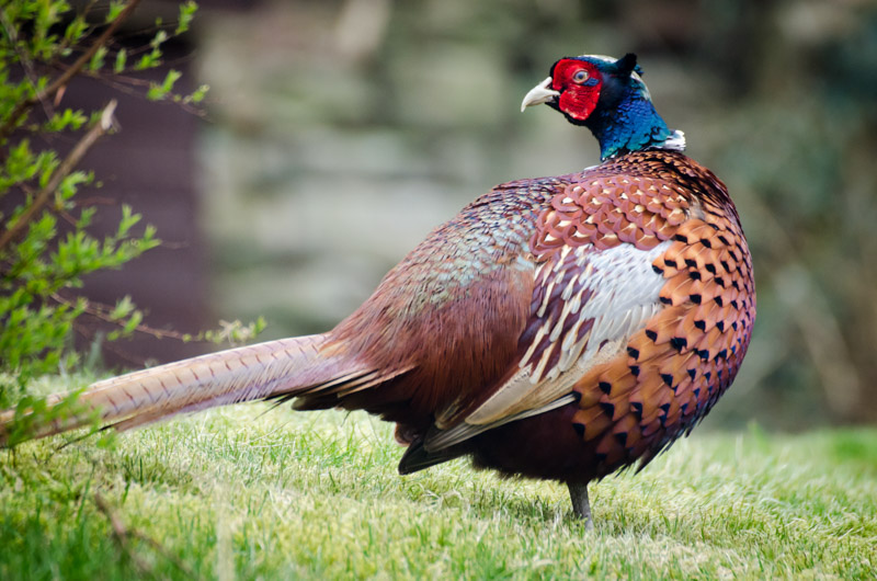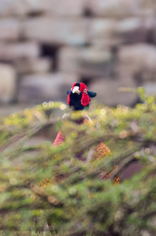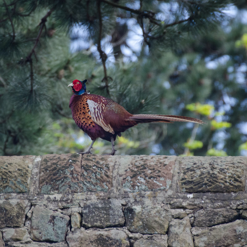 I’ll start with the pheasants. There are lots around and they visit the garden regularly because we live in a countryside hamlet. One was pecking on the conservatory door last week! Last year, I think there were five females (the brown ones), three normal males (we refer to them all as Fezziwig) and one grey-feathered male (Vincenzo). This year there are definitely at least nine females and six males, possibly more – we saw them all mooching about in the field opposite the house a couple of weeks ago. I love the spectrum of colours on the males.