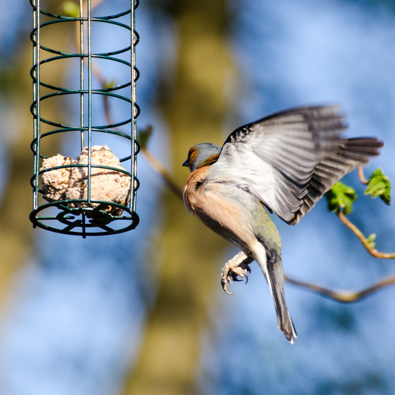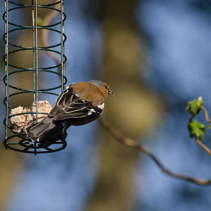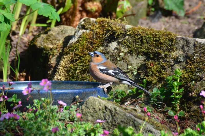 Goldfinches visit quite often but they don’t come down to the feeders near the house, preferring to eat from a nyjer seed feeder higher up the garden – I’ve never yet managed to get a decent photo of them. Then we have the chaffinches who are very regular visitors.