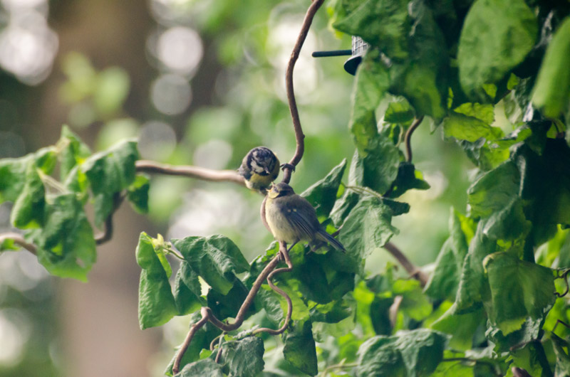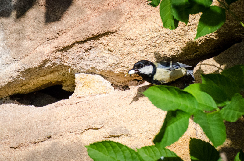 One sunny day in early June, I sat and watched a pair of hard-working great tit parents tirelessly fly off to find caterpillars, take a breather on a little branch in our hedge, then expertly navigate into a small hole in the quarry wall at the top of our garden. I could hear the chirping babies inside get very excited by each arrival. The adults would soon leave again though, sometimes, having had a little tidy up, removing one of the babies’ white fecal sacks. It was lovely to see those same fluffy babies, a little later on, visiting our bird feeders.