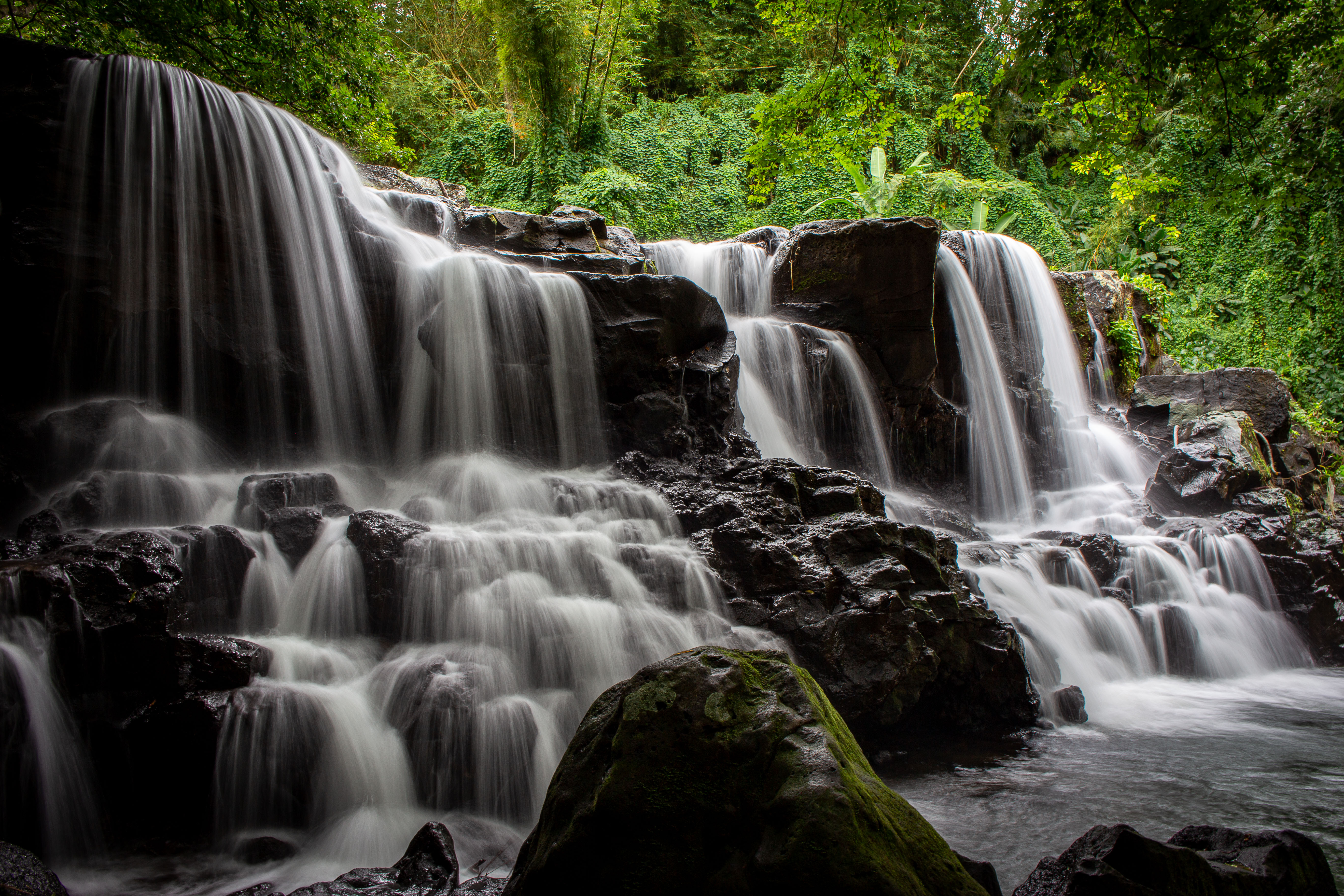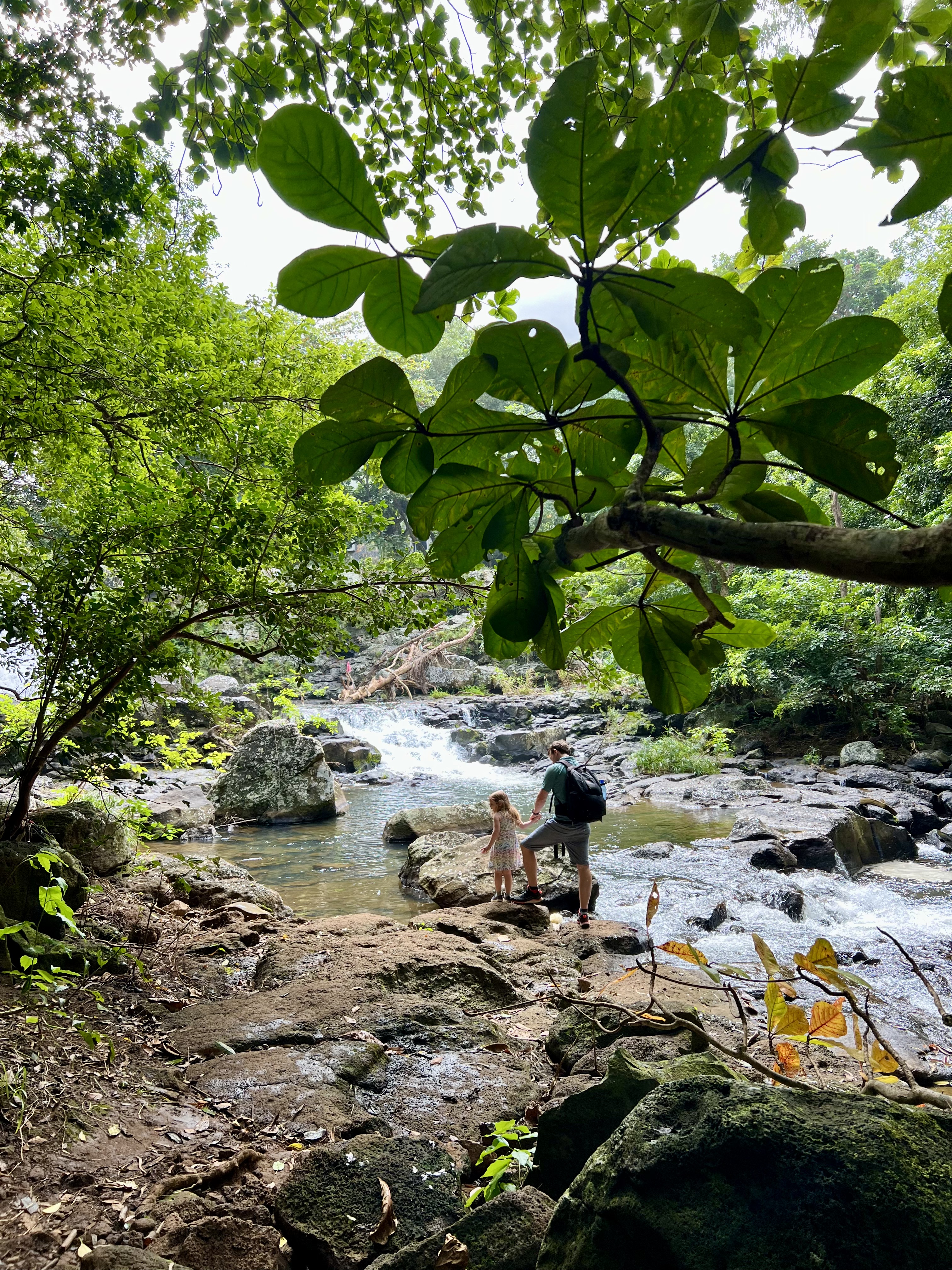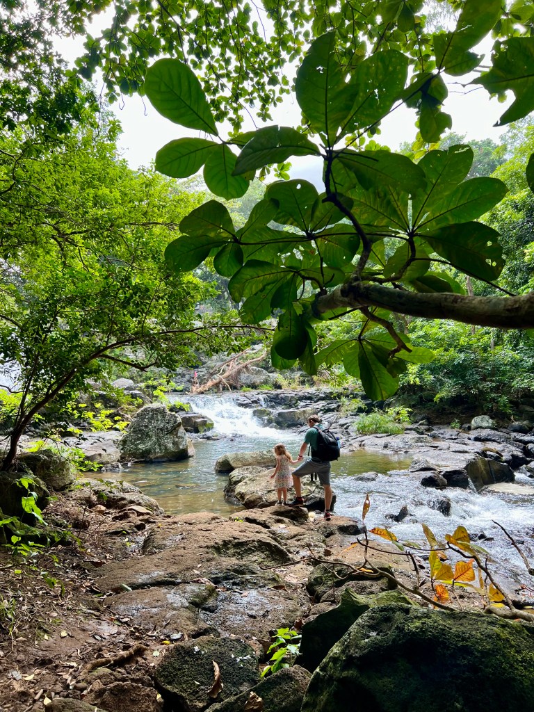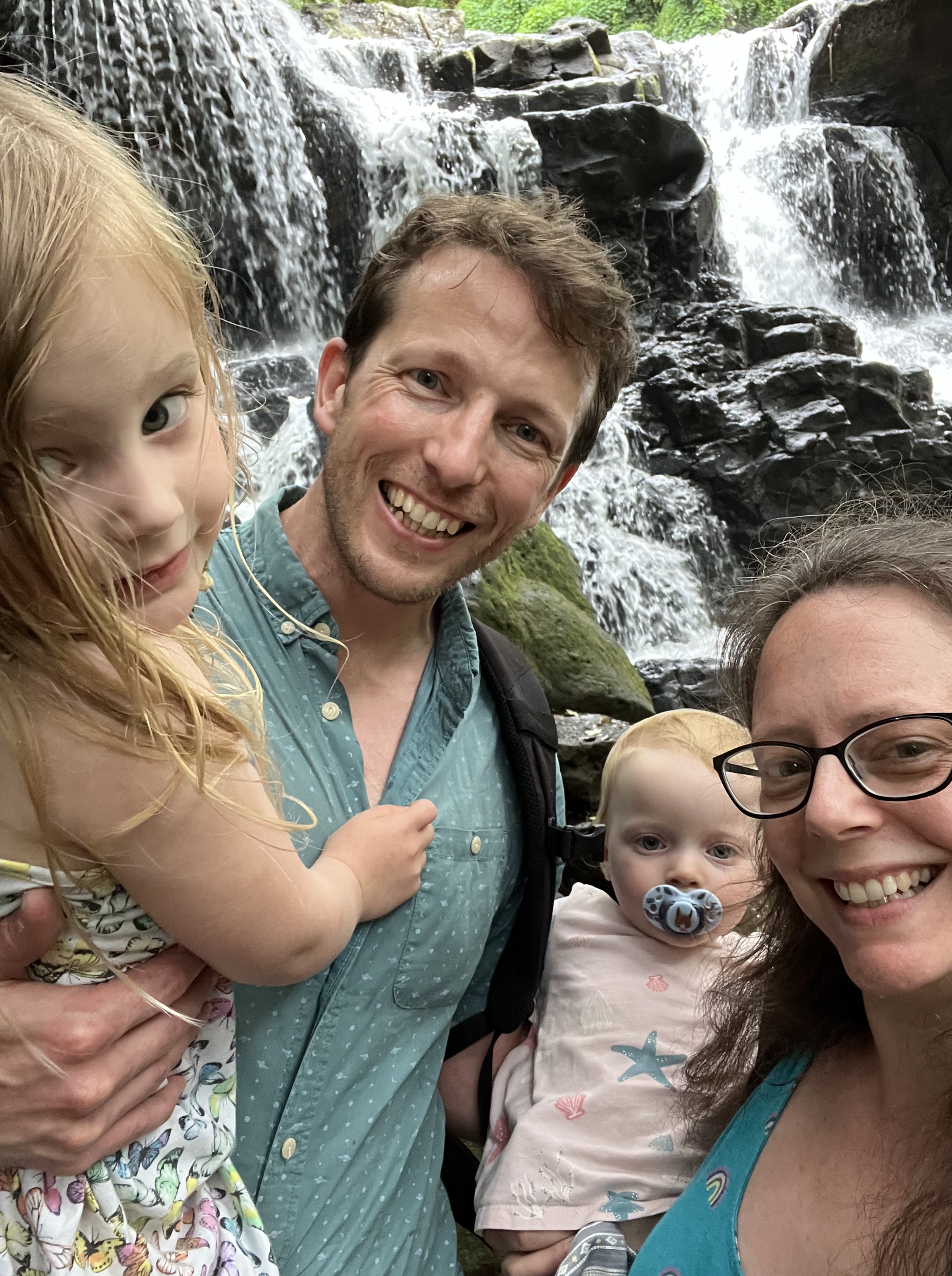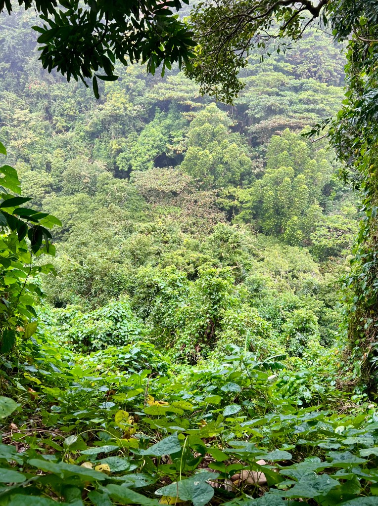 There are four waterfalls. Due to the little legs, the proximity to lunch time and the large number of mosquitoes despite ALL the bug spray, we just did the first two. The walk was very steep and slippery under foot with some super sheer drops and no fences! Occasional breaks in the dense trees revealed just how high up we were.