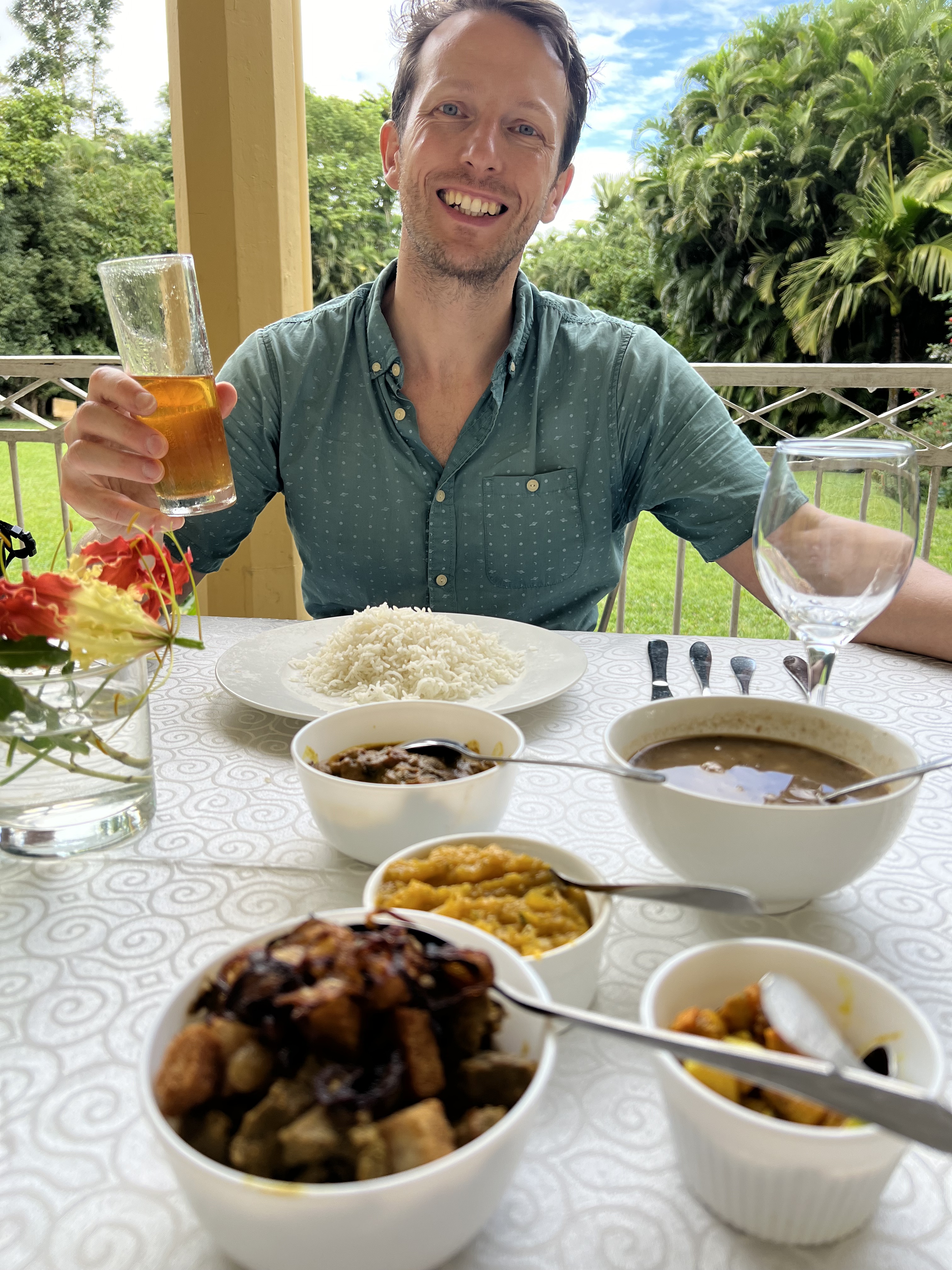 The waterfalls, house and gardens were all lovely. But this was also where we had our absolute best meal of the trip. Two different curries, a heap of rice, pickles, daal and a starter of some fried deliciousness! All the more memorable for the view over the lawn as we ate.