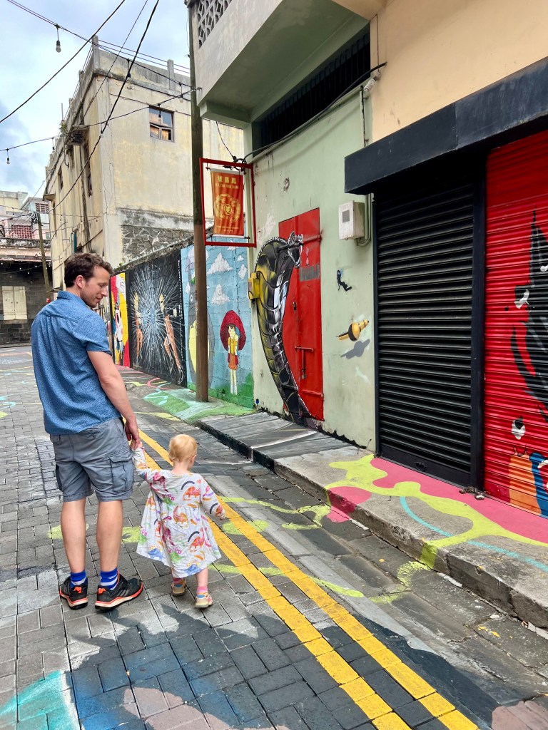 We parked in Le Caudan mall and grabbed some lunch from one of the food vendors which we ate whilst Small grooved out to some street musicians! Then we headed out along the waterfront which was a hive of activity.