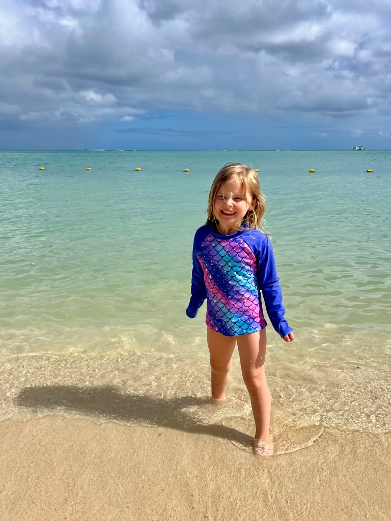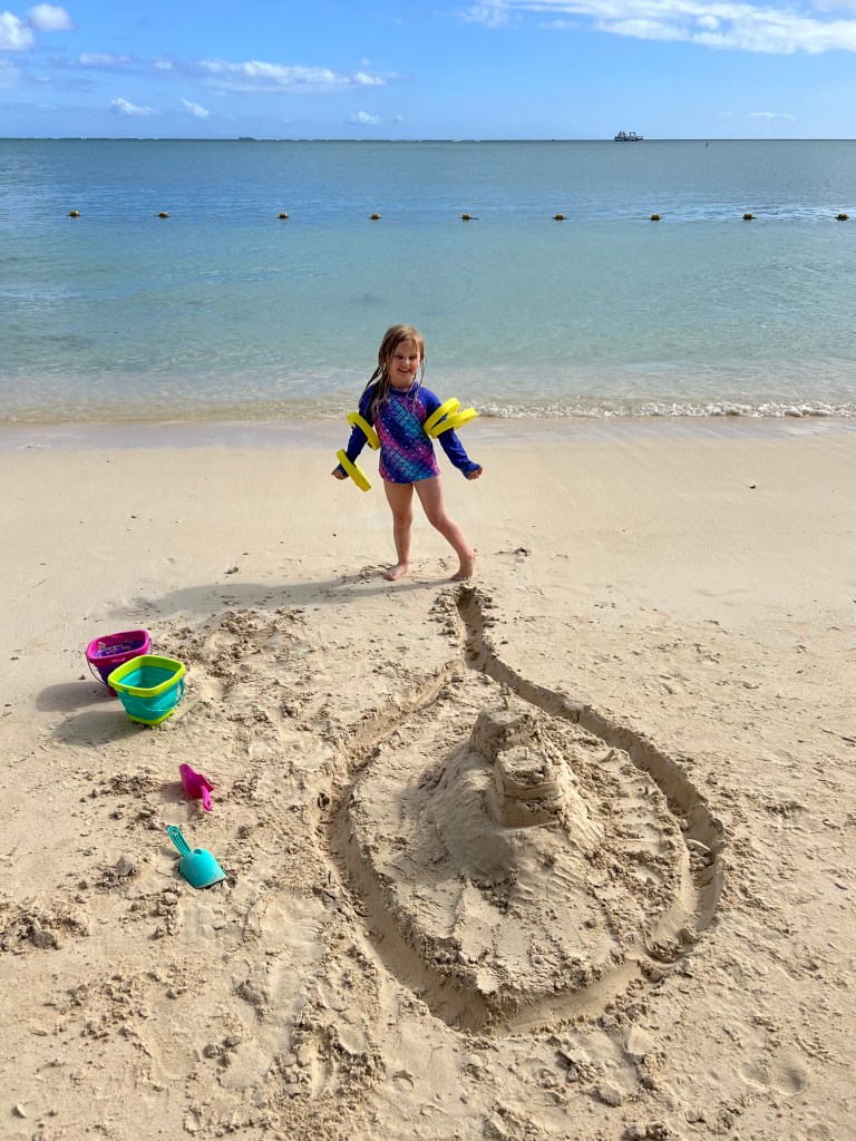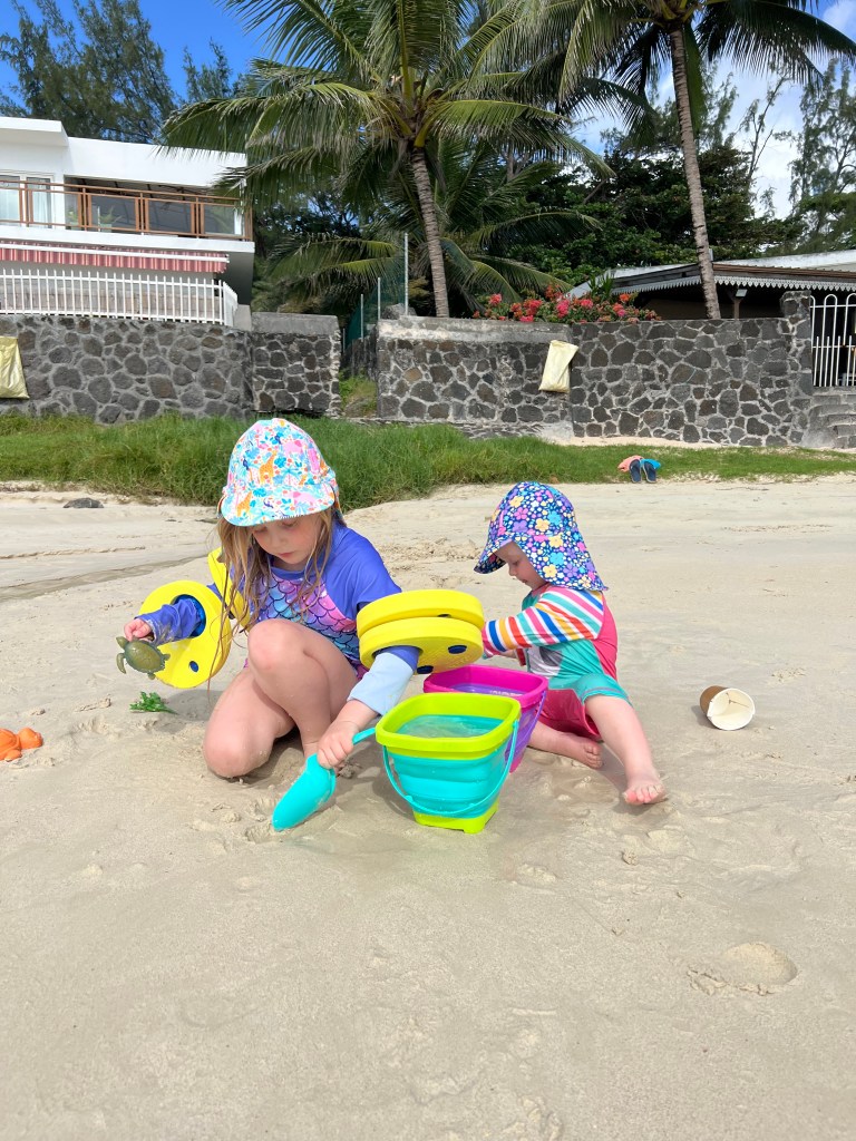 It’s quite a small beach and finally gave us sight of some palm trees! The water was beautifully clear but there was nothing to see snorkelling near the beach and there weren’t even any shells or corals to collect and paint as we love to do! But the girls still had a brilliant time in the sand and darting in and out of the sea.