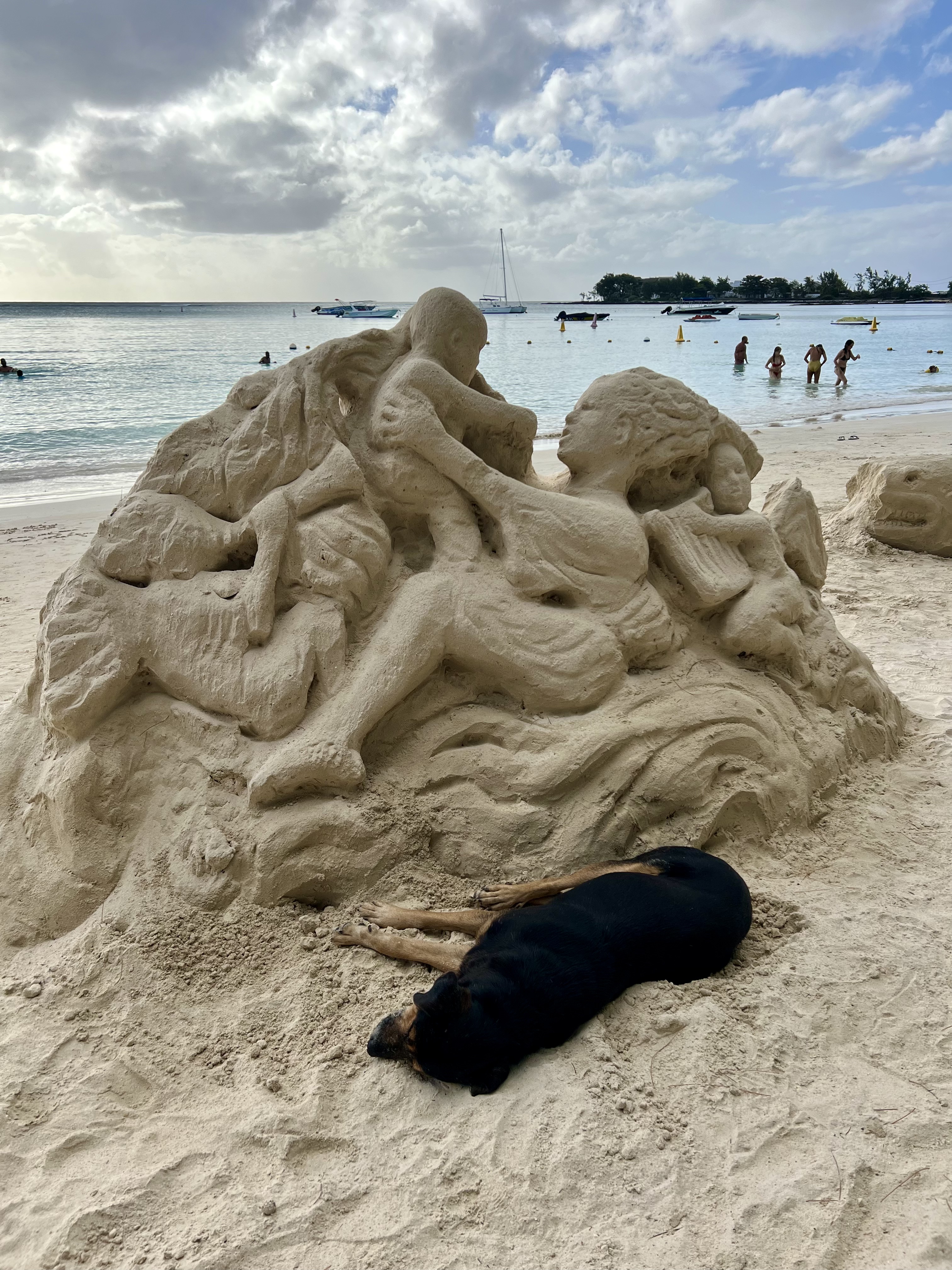 The best thing about Pereybere beach, though, is that a local man (who is also a saxophonist apparently!) comes twice a week to create sand sculptures for everyone to enjoy. Even though the one we saw had been made in the morning and was broken in places, it was still very impressive. Such a talent!