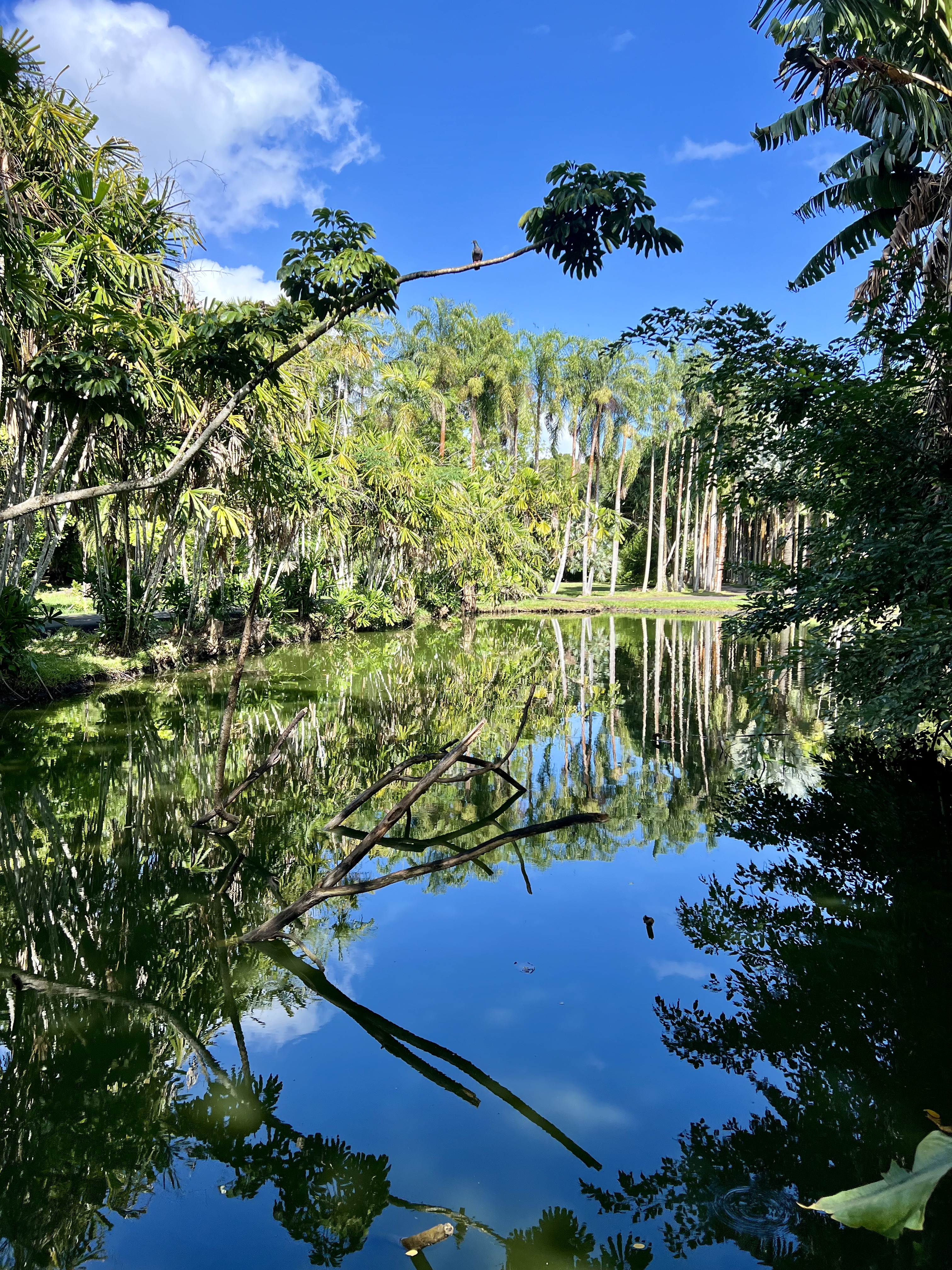 Little ponds and waterways, winding paths and bridges, and grand palm-lined avenues make it a magical spot to explore (or propose or celebrate a special birthday it turns out!) but the main draw is the long rectangular pond of giant Amazonian water lilies. I’d really wanted to visit and we very nearly didn’t because of the wintry weather but I’m so glad to have seen them in the end! There were a few flowers dotted about but the huge leaves were the most impressive thing. It was very tempting to try and stepping stone across them!