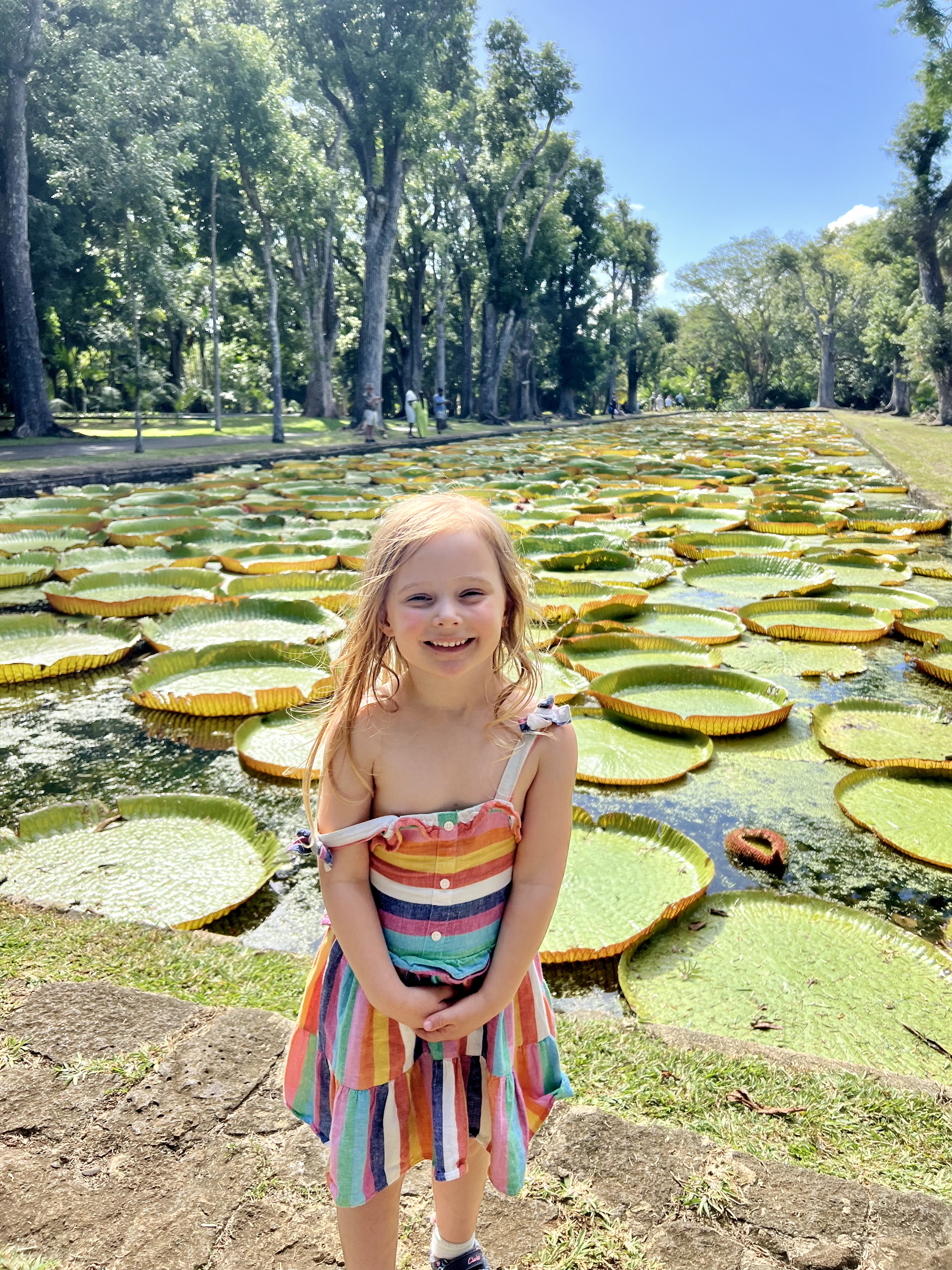 We’ll also forever associate the water lilies with the moment Tiny helpfully managed to squirt yogurt all over herself, all her clothes and the pram – all of which was just about to board a 12-hour flight home!
