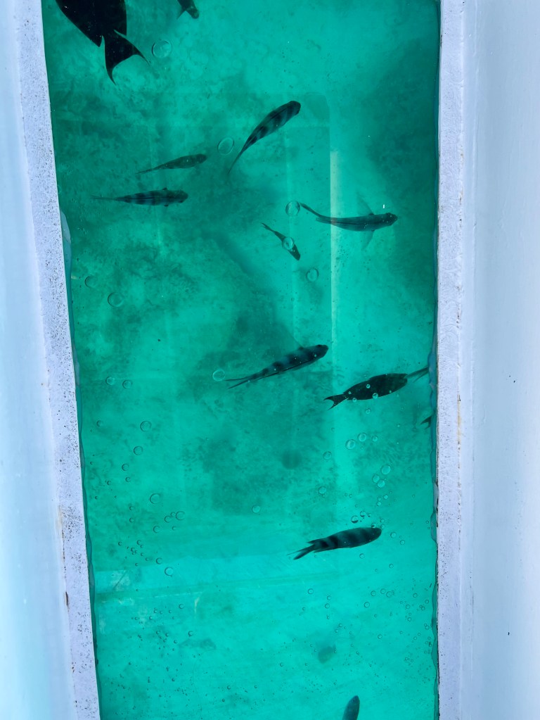 Dean and I are divers. We’ve been fortunate enough to dive in some amazing places around the world. So a glass bottomed boat is not something we’ve ever done before and would never have even considered had we not had the kids. But diving is off the cards for now while we travel with them because we love to dive together and wouldn’t feel comfortable leaving the girls with a sitter.