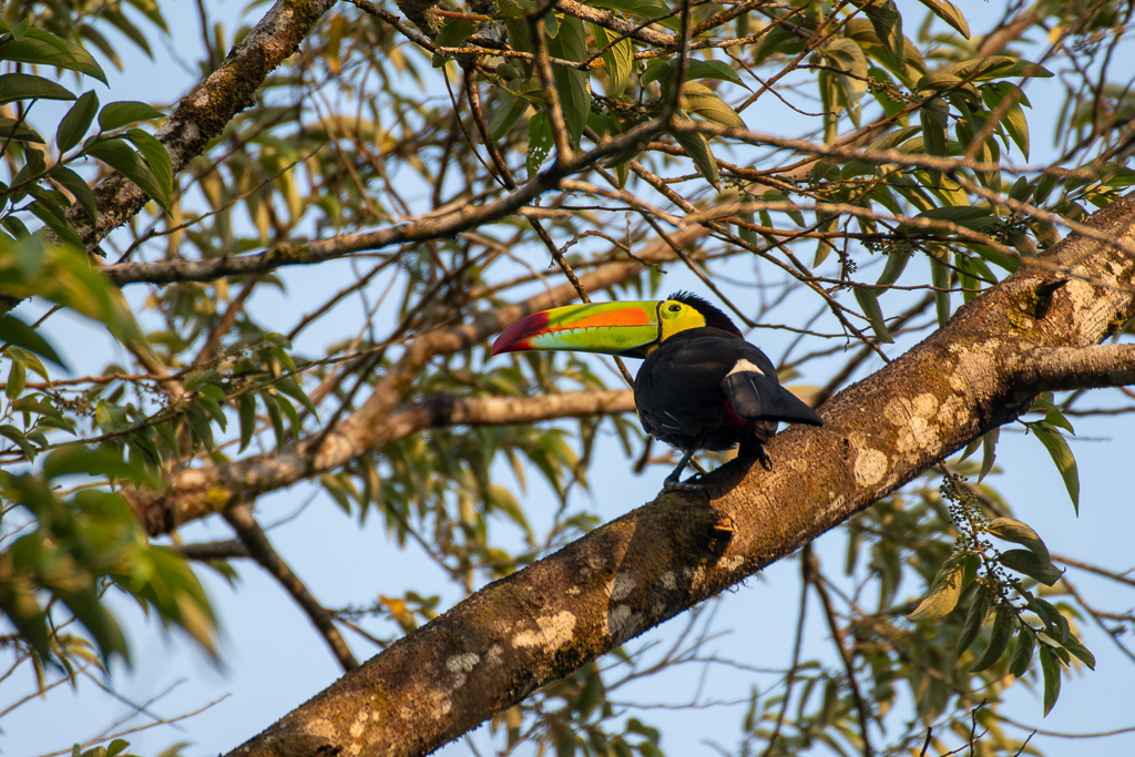 We stayed for four nights – the longest stop of our trip – so we were able to properly relax and enjoy our surroundings which were incredible. From the decking outside the house, we sat, watched and listened for hours to the forest, soaking up that very special feeling of living in the jungle but with all the comforts of a home! There were trees all the way into the distance where toucans perched, squawking to each other over the canopy, but all sorts of birds also landed in the trees right next to the house.