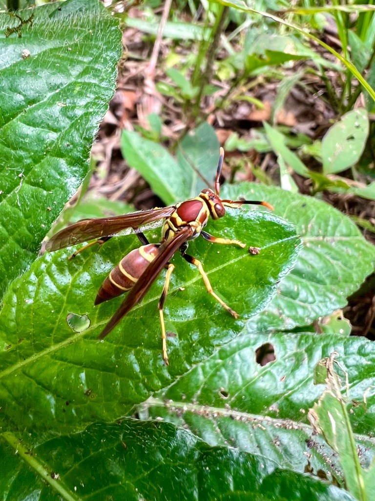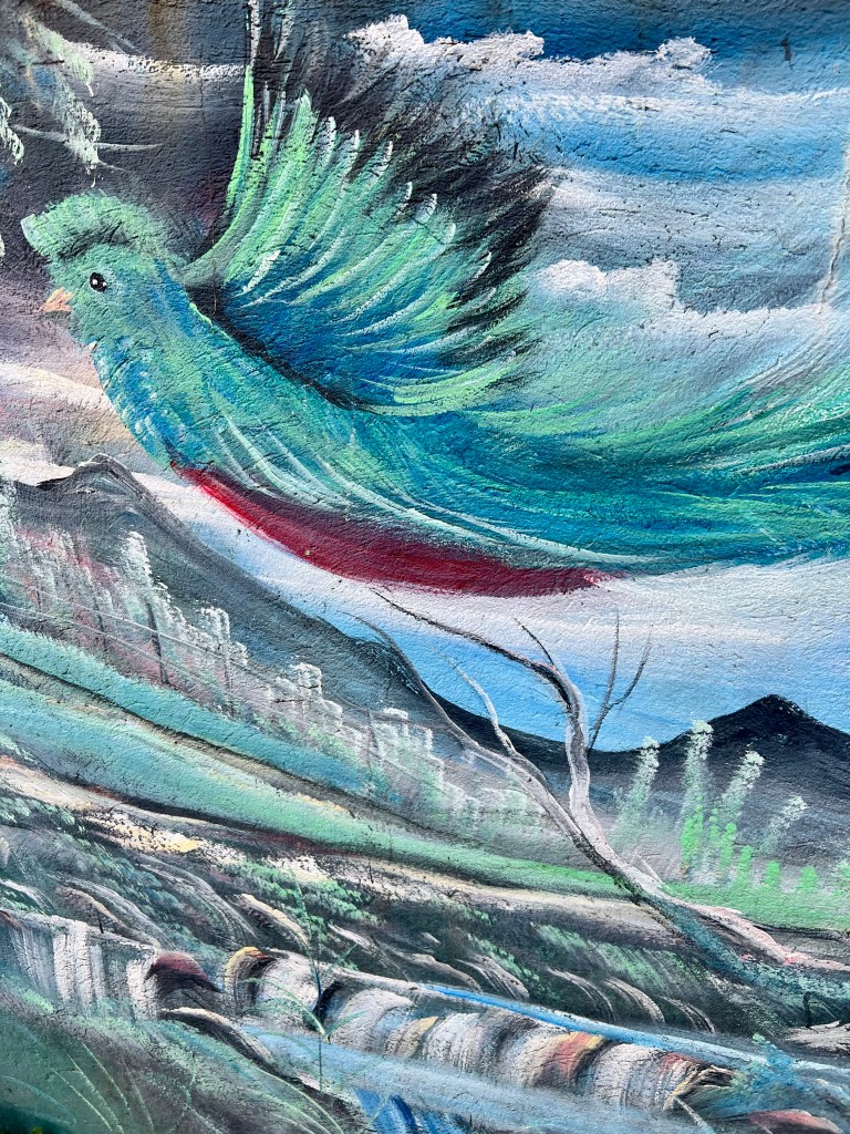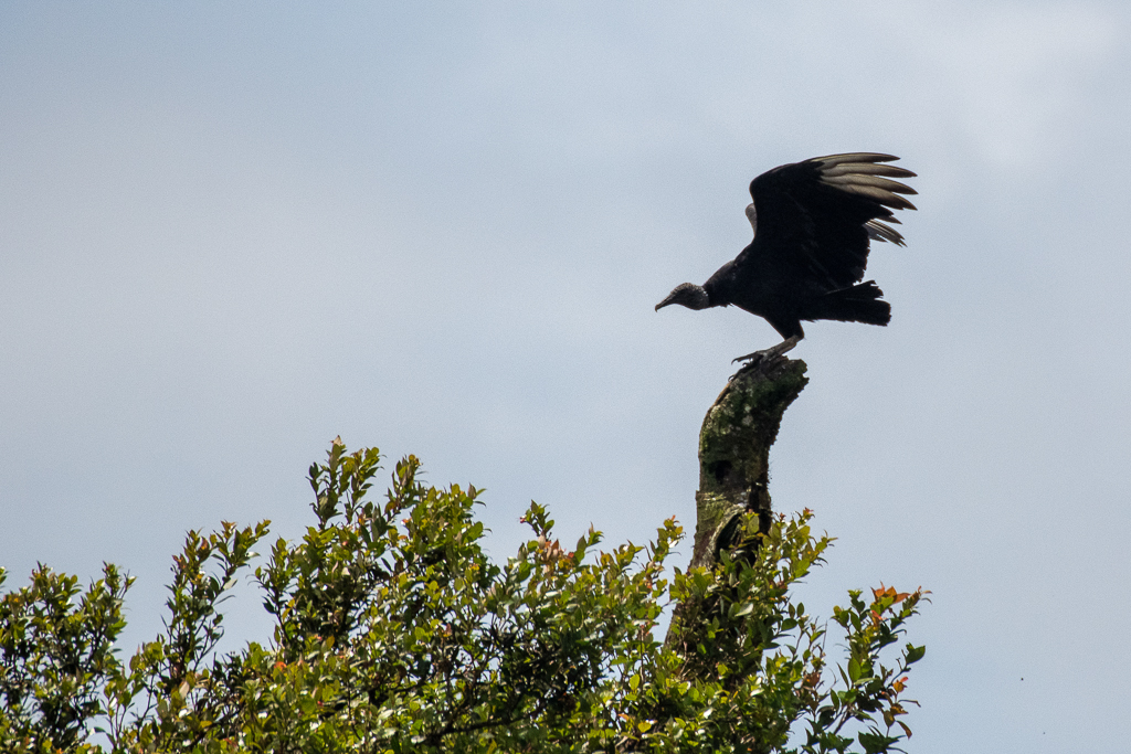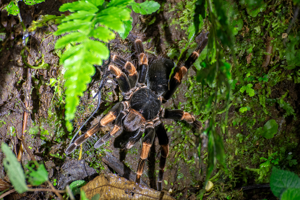 Although apparently home to sloths, jaguars, pumas, spiders, monkeys and hundreds of species of birds, we didn’t see anything big or any snakes or frogs, but it was strong on minibeasts. Our two most memorable experiences were with arachnids: a cool little spider that catapults itself in response to noises (vibrations, I guess); and a female orange-kneed tarantula which our terrified guide tricked out of her hole with a stick! We also saw lots of millipedes, a caterpillar, a stick insect, a collard redstart and black vultures. Regardless of the low sightings, it was just a pleasure to walk the forest and listen to the birds – we even heard – but didn’t see – the elusive resplendent quetzal!