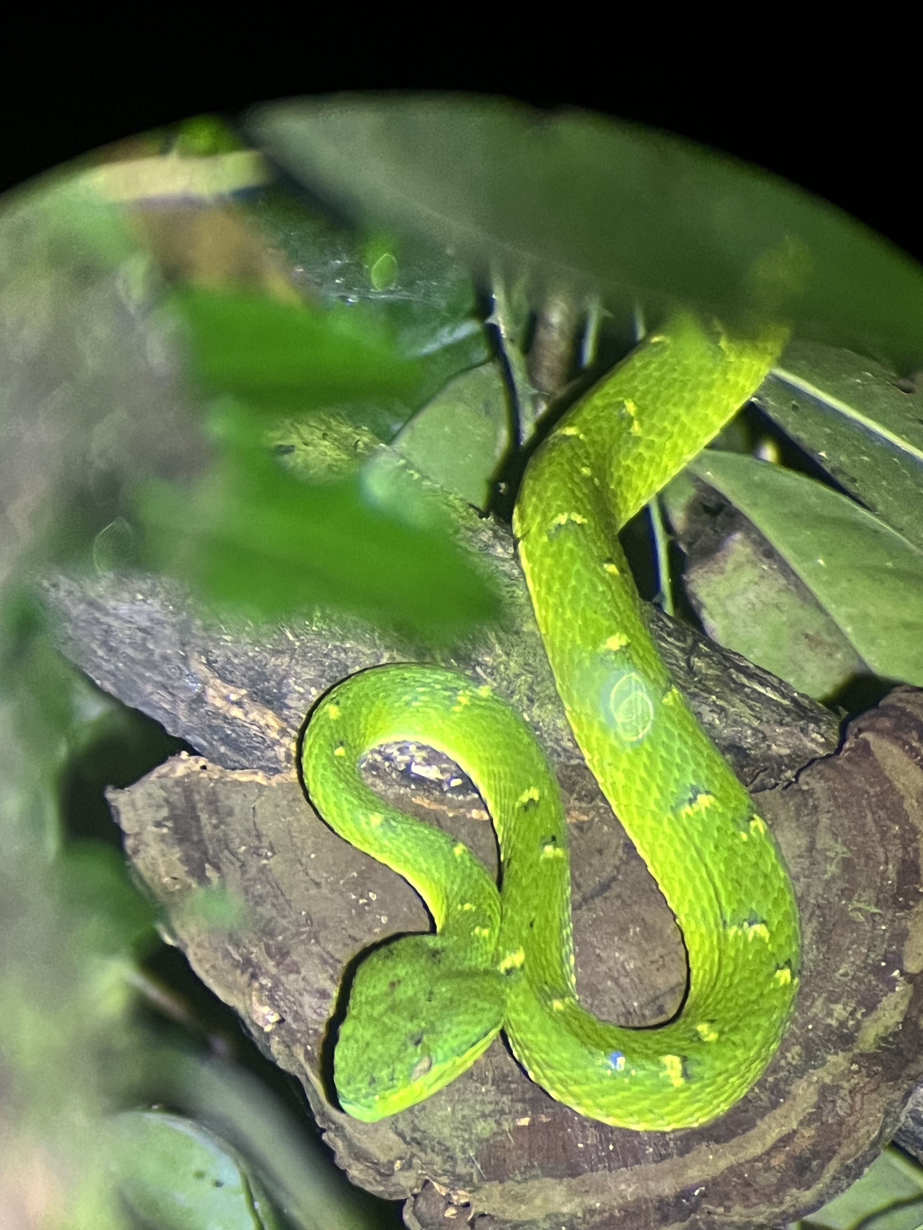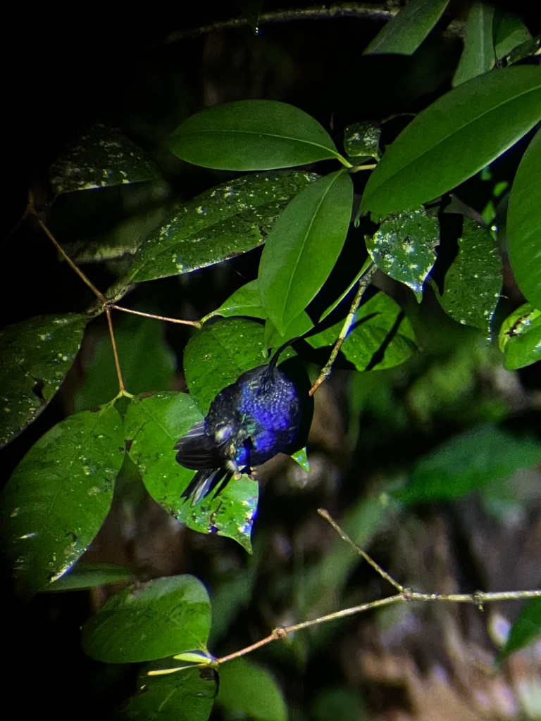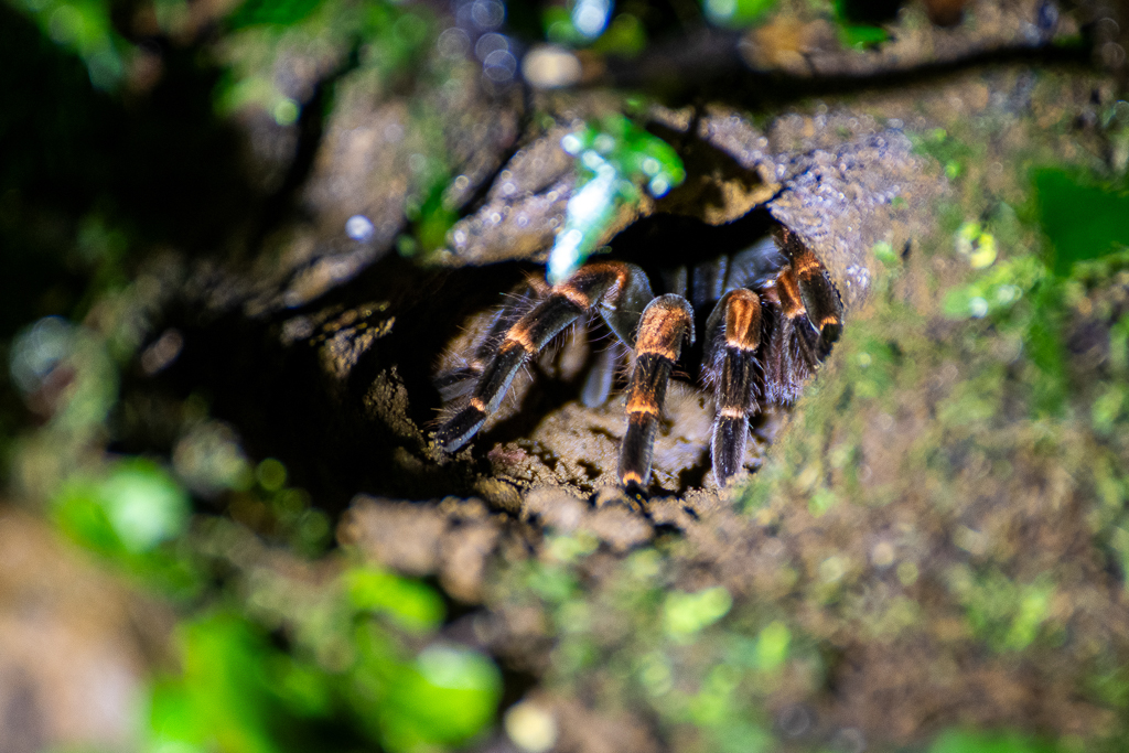 So many places offer night hikes that choosing between them feels arbitrary since you could see all the mammals one night (sloths, kinkajous, armadillos, etc.) and not another. We went with Refugio Monteverde and we weren’t too lucky on that front but it was an adventure nevertheless. Having a guide was beneficial as they’ll always spot way more than you would alone and their telescopes obviously give you a much clearer view (which you can also take photos through). We saw the highly venomous green pit viper, a sleeping violet sabrewing hummingbird, frogs, a tiger spider, a caterpillar about to turn into a chrysalis (you can tell because of the spike apparently), a daddy longlegs eating a moth (apparently a rare sight!) and, a favourite of the kids, a headlight beetle aka lightning bug.