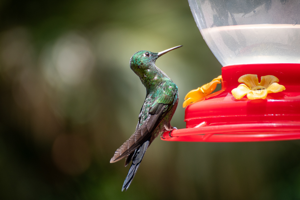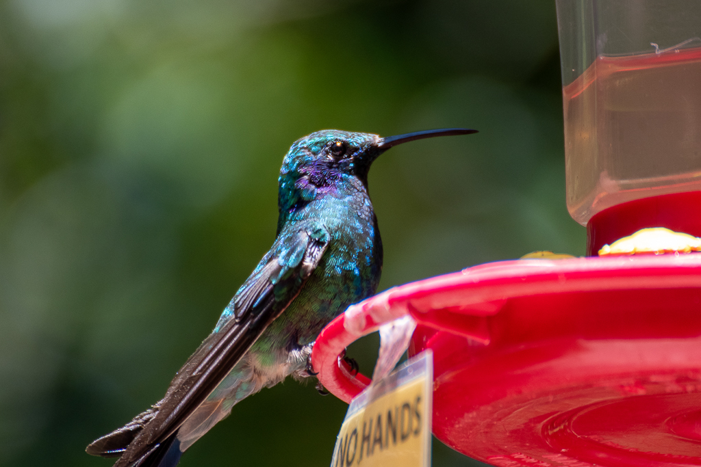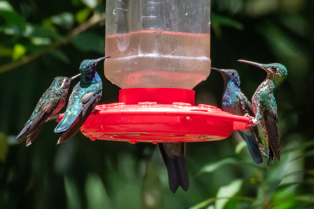 At the edge of the Monteverde Cloud Forest Reserve, you’ll find this very ordinary café with a lot of very extraordinary visitors. It’s the only other place we were certain we wanted to return to on this trip. It’s a pretty magical spot: the hummingbirds were mesmerising with all their iridescent colours. The thrill of the thrumming noise they make flying really close past your ear is quite something! Trying to take a photo quickly enough whilst they’re darting from feeder to feeder and then back to the trees for a rest becomes a bit of an obsession that it’s very hard to draw yourself away from, much to the disdain of the gift shop lady who felt our children were too noisy. The hummingbirds didn’t seem to mind though! I took hundreds and hundreds of images so here is a tiny – but probably still too large – selection.