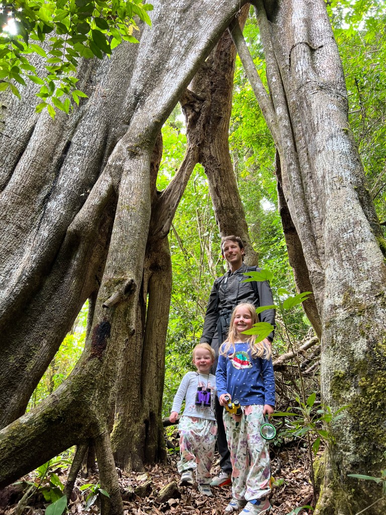 Small is an amazing wildlife spotter and was keenly mimicking birdcalls and demanding we all walk quietly! Tiny’s adventurer spirit was strong too, as we climbed inside the giant strangler fig trees which had done their deed on the trees they once grew around.