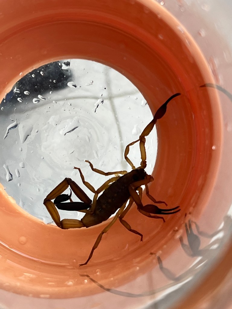 And if you’re still reading, I’ve not forgotten about the reason for the ‘almost perfect’ accommodation. One morning, we were making the bed that Dean and Tiny had slept in and out scuttled a scorpion! Terrified but trying to stay calm for the sake of the kids, we caught it in a cafetiere and Dean escorted it a long way off the property!