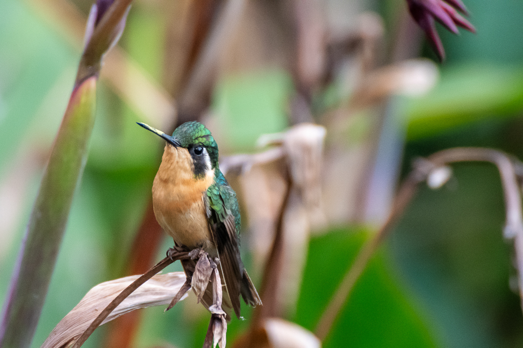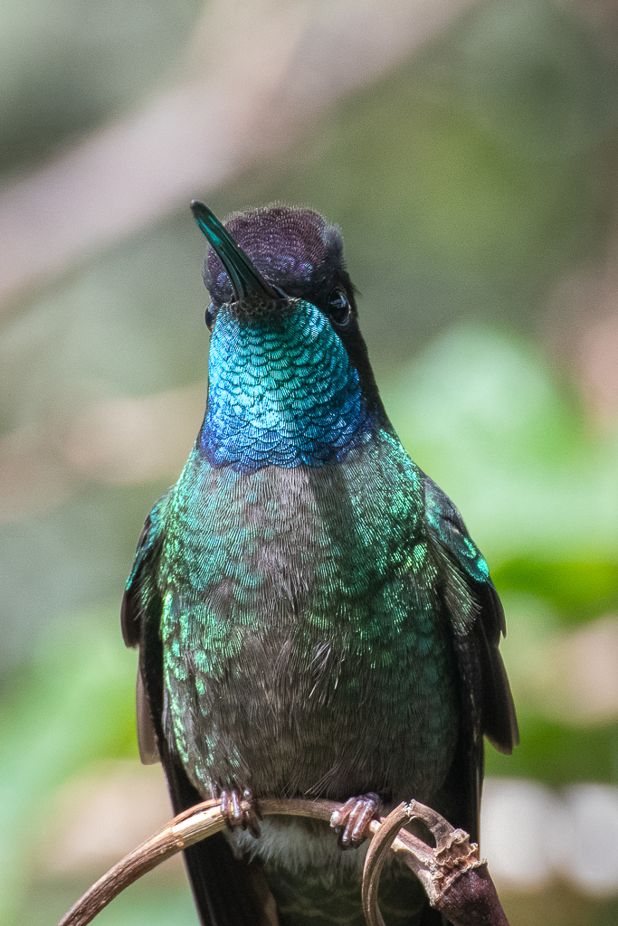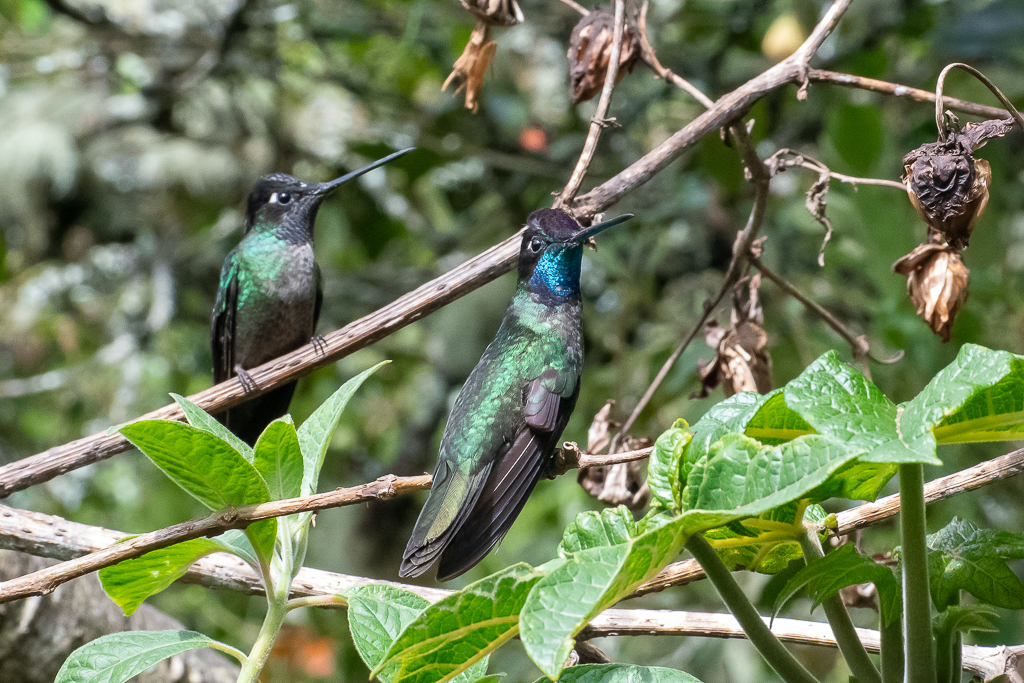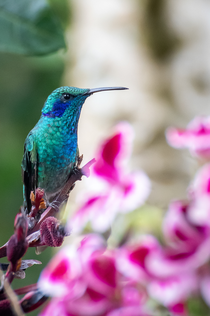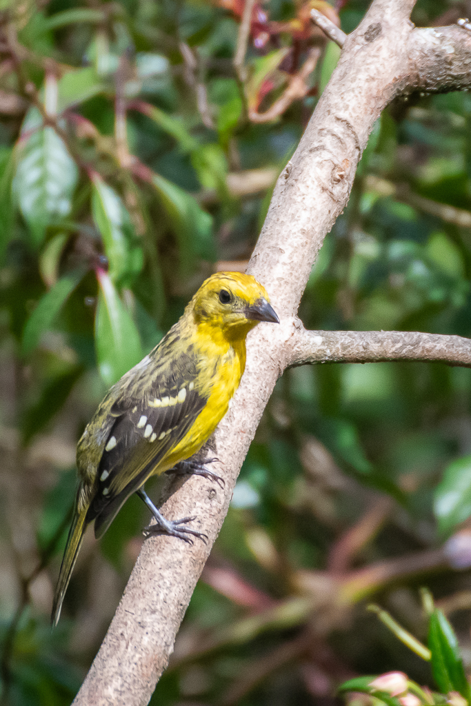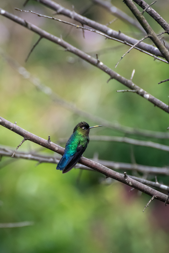 Descending into the San Gerardo de Dota Valley, we pulled in at the unassuming Miriam’s Quetzals. Climbing out of the car, stretching after a long stint on the road, we weren’t sure what to expect as we headed through the bright and airy café and out onto the back veranda. But we were met with such a magical sight! Tall aguacatillo trees, colourful flowers, feeding stations and a full rainbow of exotic birds! Naturally we watched and photographed for ages. Here’s a little gallery including flame-coloured tanagers (yellows are female and oranges are males), acorn woodpeckers, a blue-grey tanager and, of course, plenty of hummingbirds.
