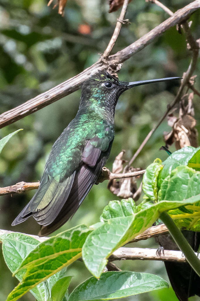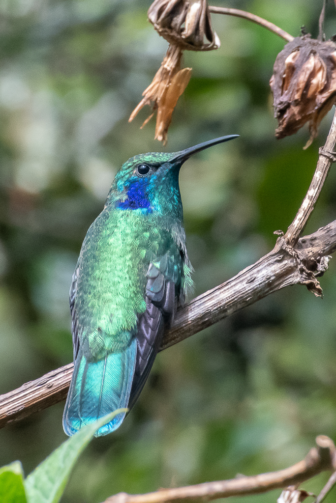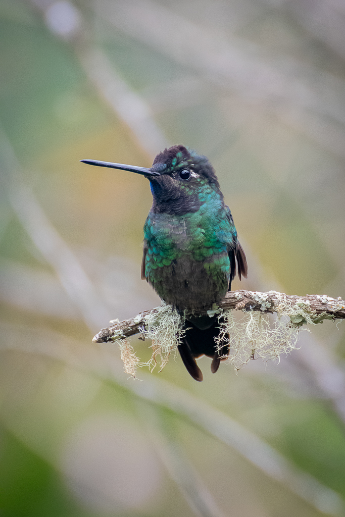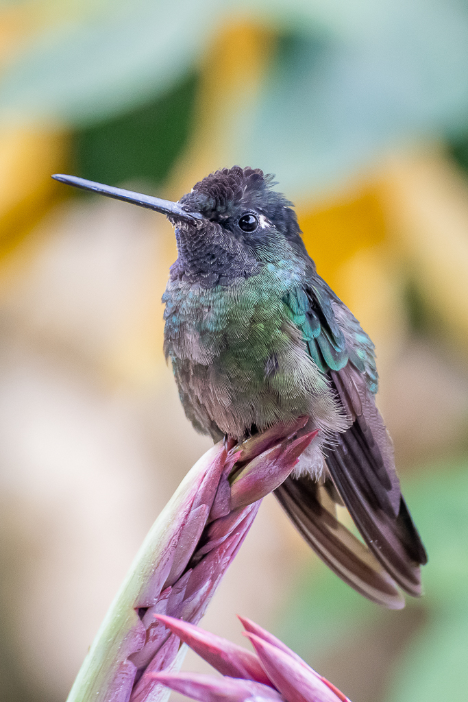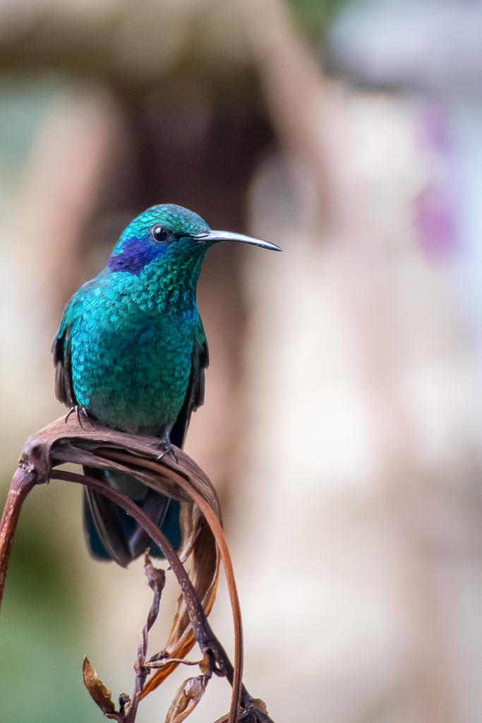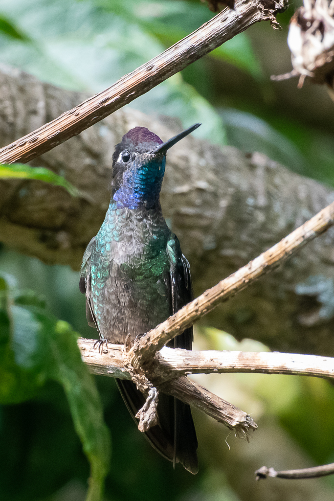 Descending into the San Gerardo de Dota Valley, we pulled in at the unassuming Miriam’s Quetzals. Climbing out of the car, stretching after a long stint on the road, we weren’t sure what to expect as we headed through the bright and airy café and out onto the back veranda. But we were met with such a magical sight! Tall aguacatillo trees, colourful flowers, feeding stations and a full rainbow of exotic birds! Naturally we watched and photographed for ages. Here’s a little gallery including flame-coloured tanagers (yellows are female and oranges are males), acorn woodpeckers, a blue-grey tanager and, of course, plenty of hummingbirds.