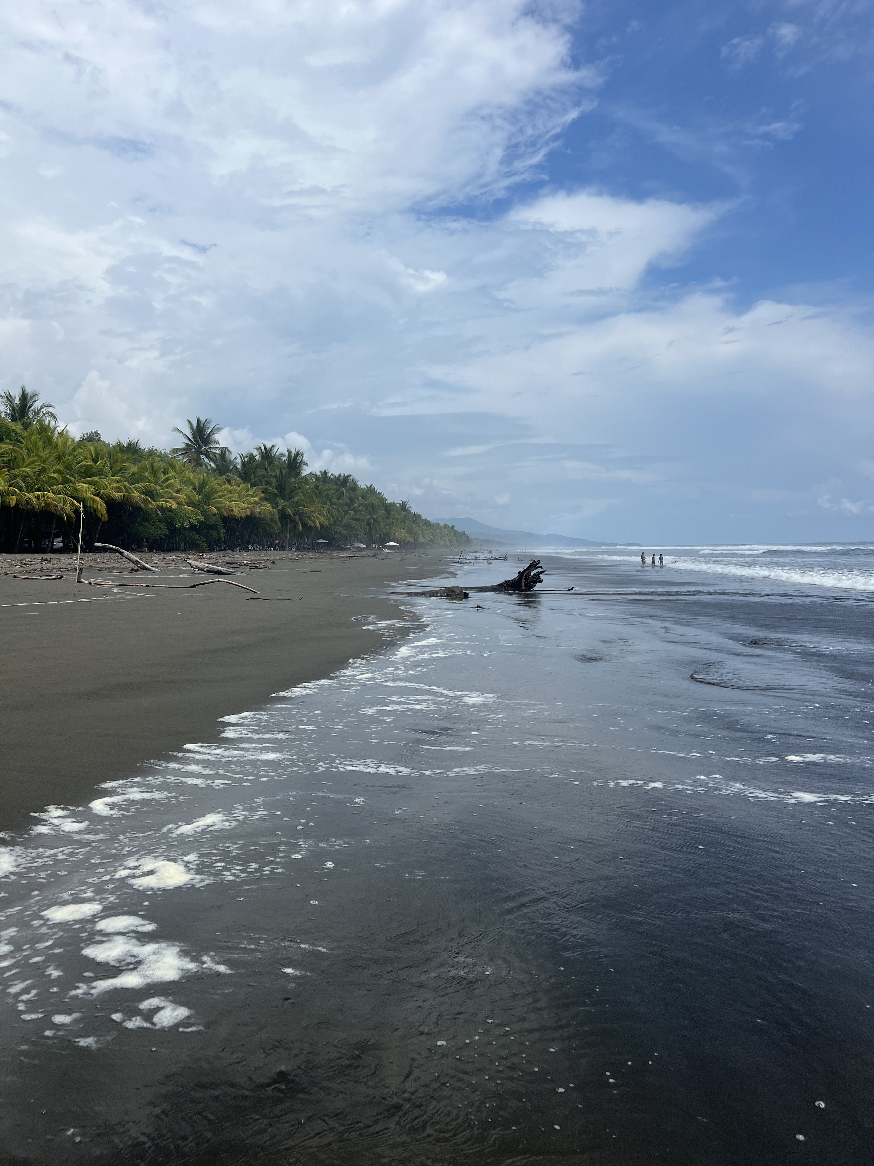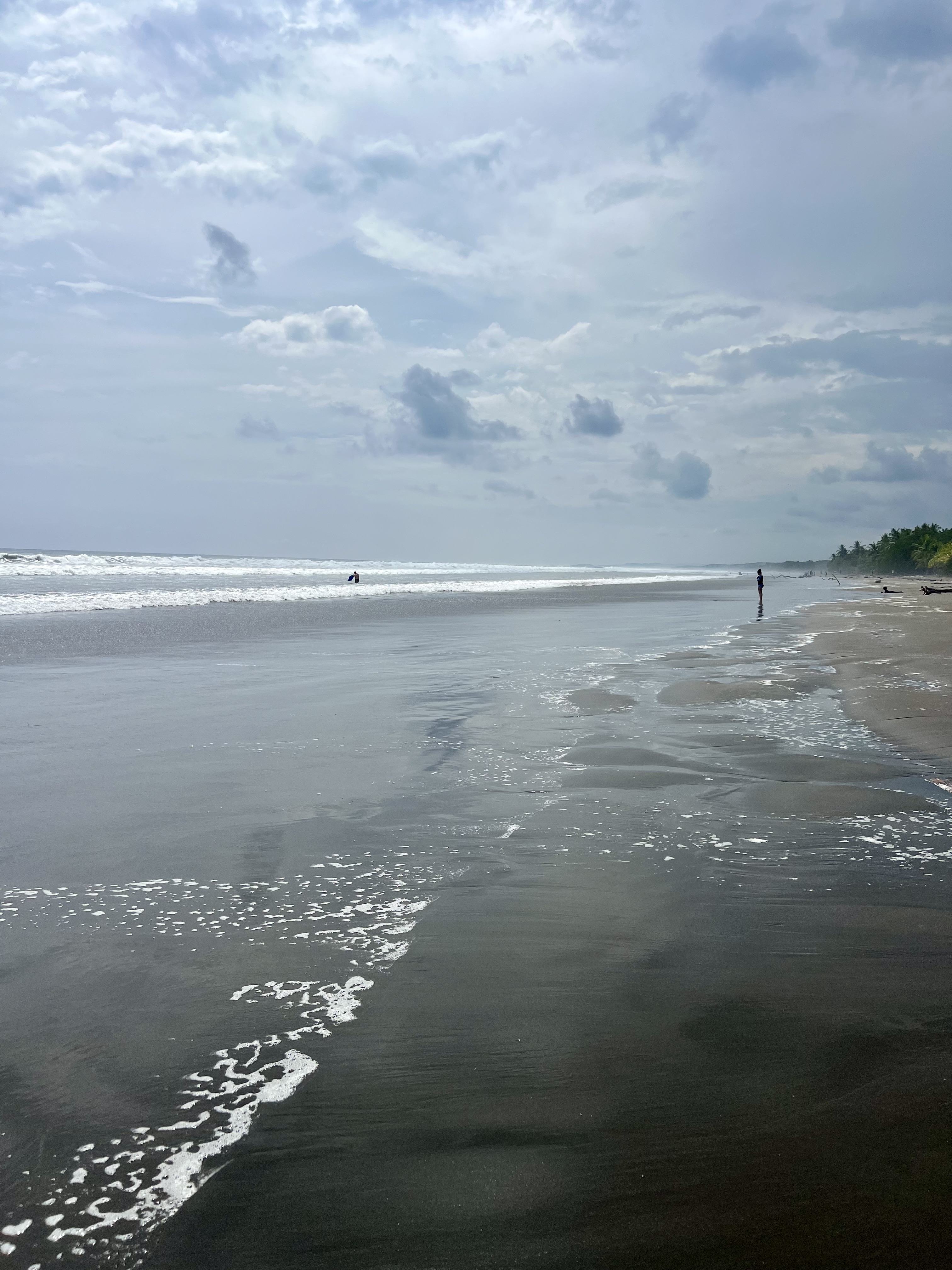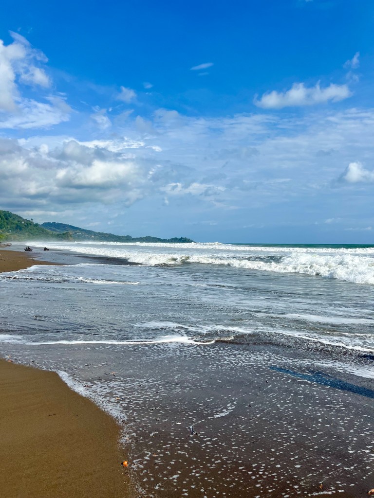 A beautiful, quiet and un-touristy black volcanic sand beach known for its dangerous riptides. You pull your car up onto the top of the beach under the palm trees and, just like the locals, set out your picnic or BBQ and relax in the shade. Pelicans fly overhead, dipping into the sea for fish, and sloths or monkeys can be spotted in the trees (though we weren’t that lucky).
