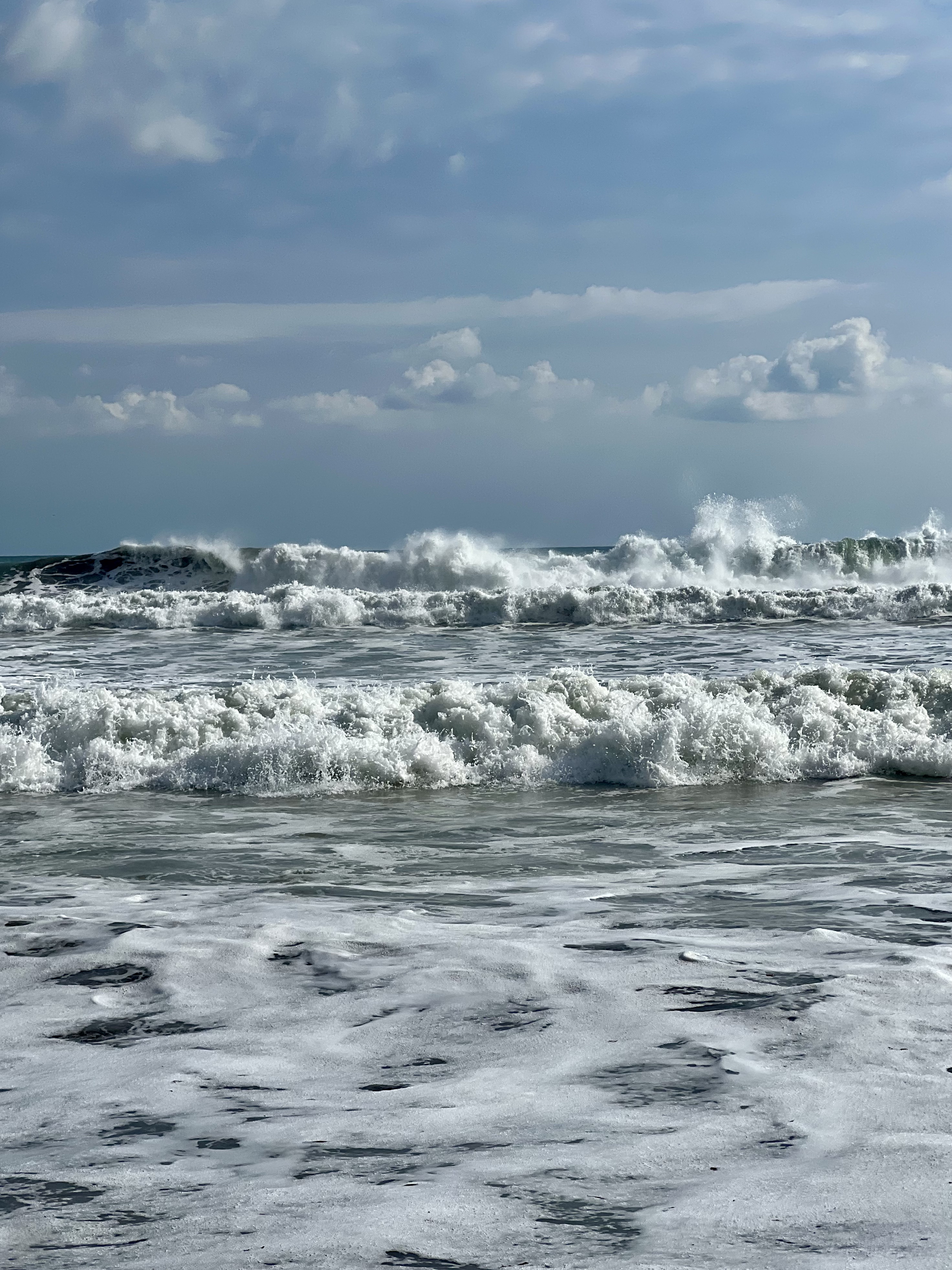 Another beautiful and peaceful beach but with calmer water and less amenities. We’d brought a picnic but, if you don’t, there are a few small, family-owned restaurants and shacks (snacks) to choose between. Along the beach is a river’s mouth which was a pretty area and good fun for a paddling adventure though water shoes are recommended.
