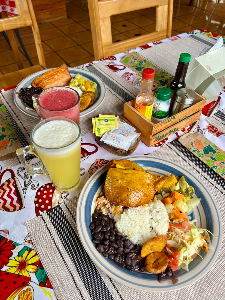 In Dominical, you’ll find a great selection of cafes, restaurants and bars. We very much enjoyed our visit to La Junta Dominical and also sampled a very reasonably priced plate of comida tipica (traditional Costa Rican food including rice, beans, grilled chicken, salad, sweet plantains, avocado) at Delicias. There’s at least one large supermarket on the main road where you can buy pretty much anything you’d need. We self-catered for ease in the evenings, and enjoyed the novelty of having a blender to make our own tropical fruit smoothies!