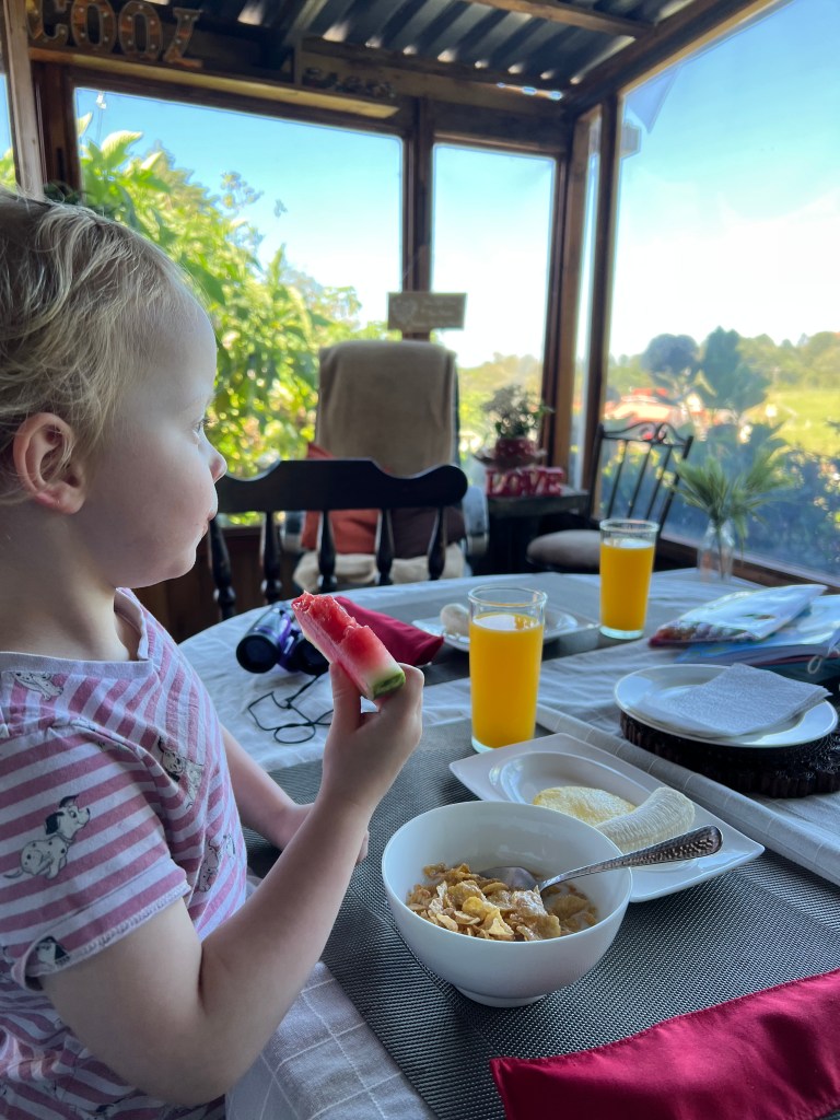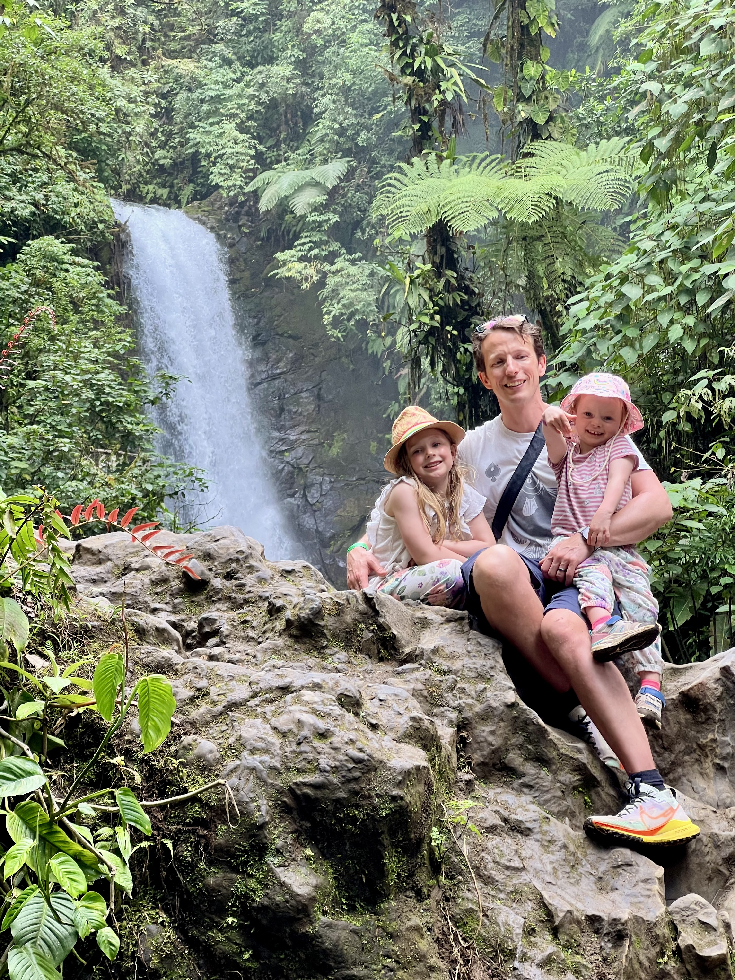 We managed to cosy up and make the best of it in the end, letting the kids watch cartoons under the covers, munching on volcano-grown strawberries from a roadside vendor, and microwaving cup noodles (they don’t often do kettles in Costa Rica because everyone has a coffee machine!).